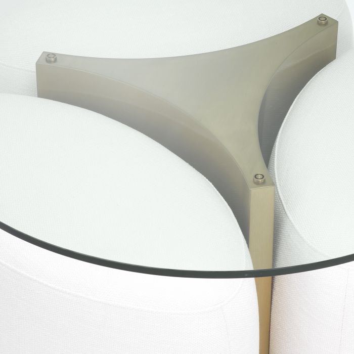 Tento exkluzívny, okrúhly konferenčný stolík s rámom z leštenej ocele má číru sklenenú dosku a zahŕňa 3 oválne stoličky. Každá stolička je čalúnená poťahom Avalon a hodí sa pod stôl. Jednoducho vytiahnite jednu, keď potrebujete ďalšie sedadlo!
