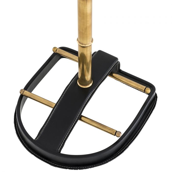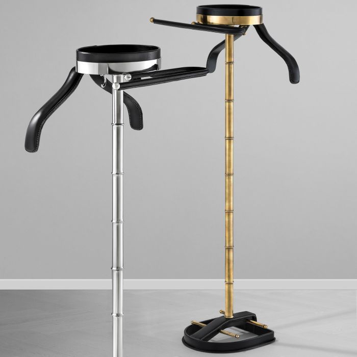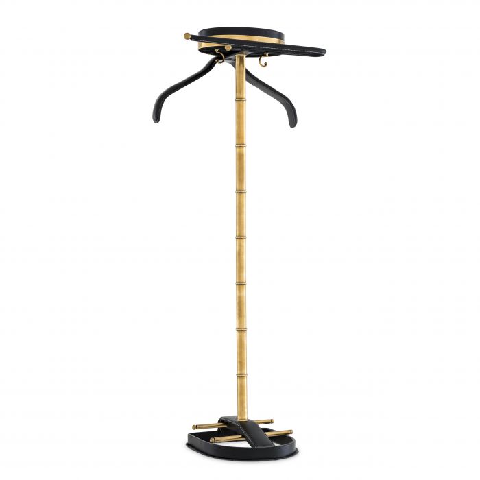 Zlatý mosadzný nemý sluha McKinsey s čiernymi koženými doplnkami.