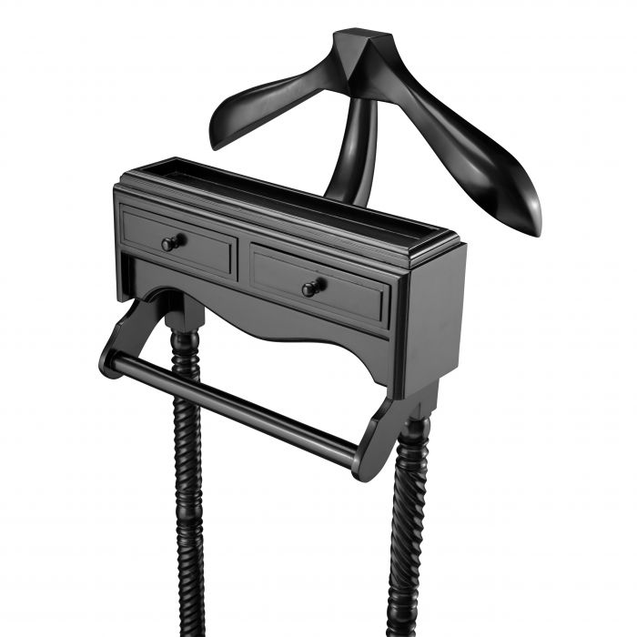 Masívny drevený nemý sluha Jaquet v čiernom prevedení s dvomi úložnými zásuvkami.