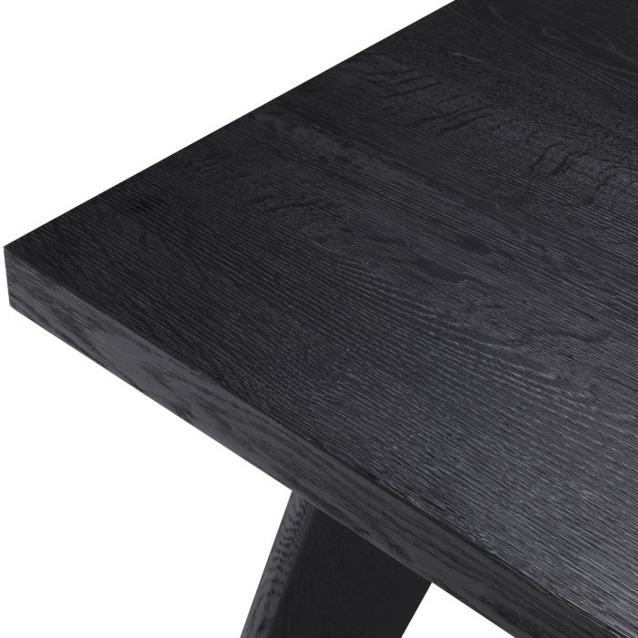 Jedálenská doska stola spočíva na šikmých a zúžených nohách. Upozorňujeme, že masívny európsky dub je živý materiál. Napriek tomu, že bol odborne spracovaný, bude sa stále vyvíjať, čo znamená, že povrch môže prejaviť prirodzený pohyb a mierne farebné odchýlky.