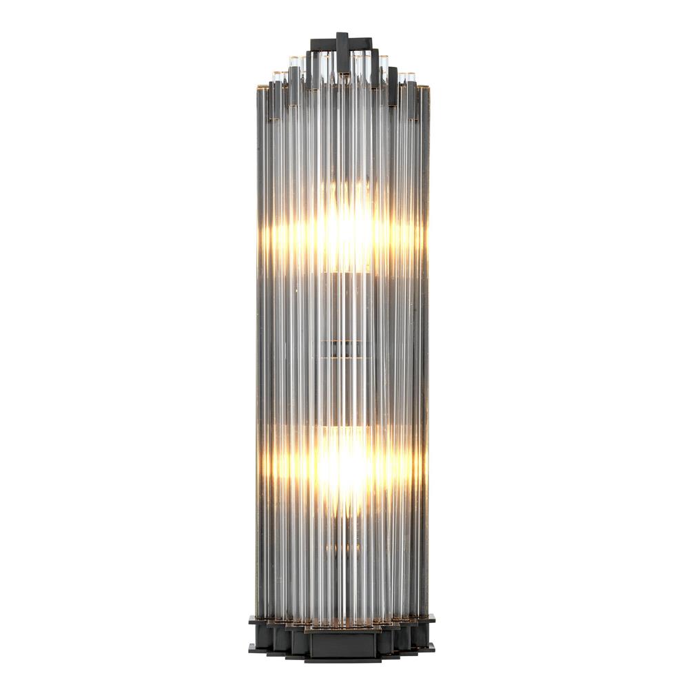 Nástenná lampa Harrod má viac ako náznak štýlu Art Deco a dobre sedí v tradičnom aj modernom interiéri. Kombinácia kovania s bronzovou povrchovou úpravou s tyčami z číreho skla vytvára príjemnú atmosféru.