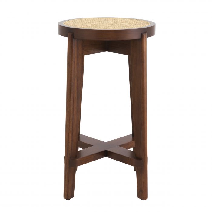 Minimalistická pultová stolička Dareau je nenápadná, ale elegantná a má robustnú konštrukciu z masívneho dreva s klasickým hnedým povrchom.