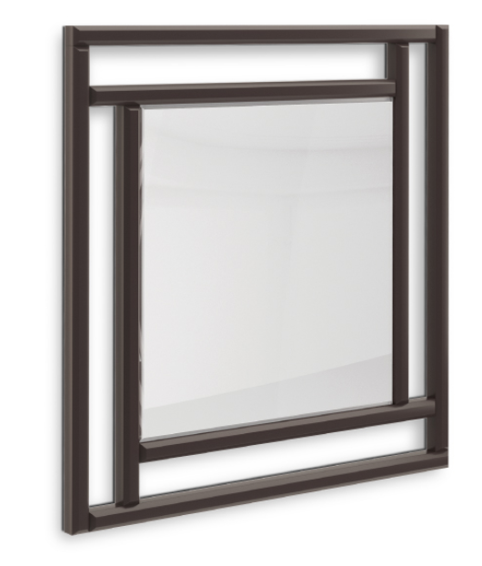 Zrkadlo s moderným a sofistikovaným rámom z orechovej dyhy.