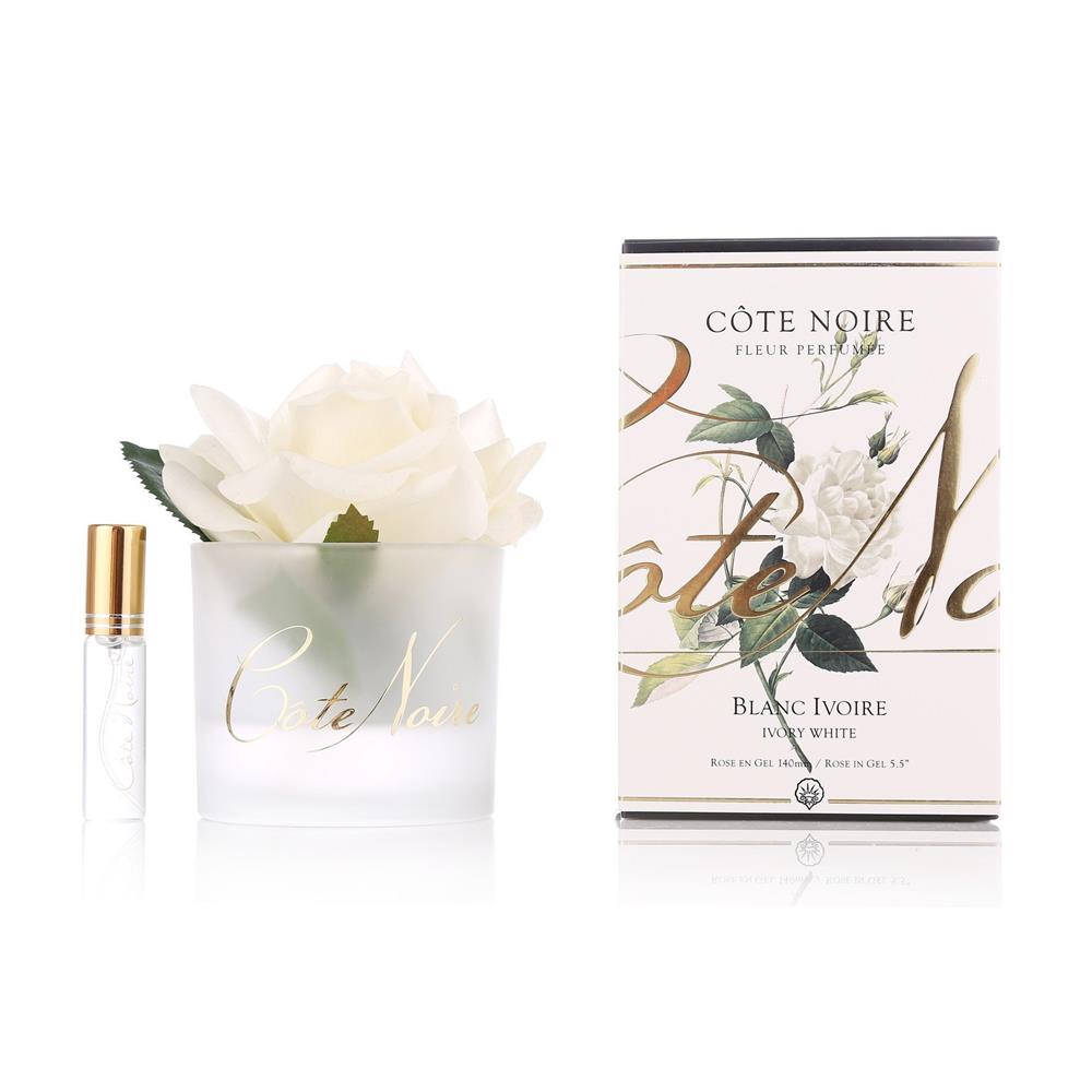 Nádherná orientálna krémovo-biela ruža vo váze s uvoľňovaním jemnej vône do interiéru.