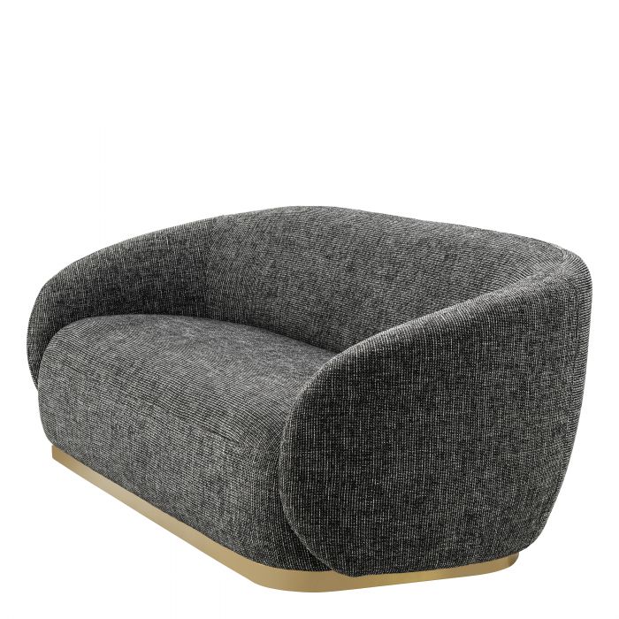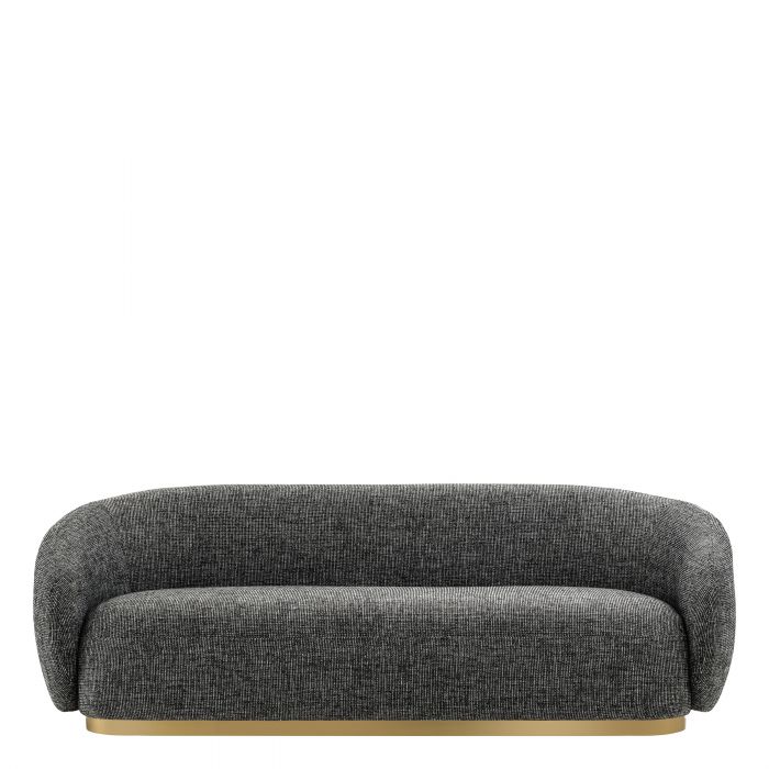 Táto elegantne zakrivená pohovka je útulná, moderná a má podstavec z brúsenej mosadze.