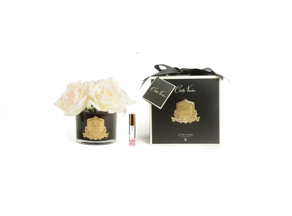 Nechajte sa opantať dotykom orientálnych ruží, ktoré sú vsadené do hodnotnej vázy a súčasťou je flakón s parfémom, ktorý sa aplikuje priamo na kvety.