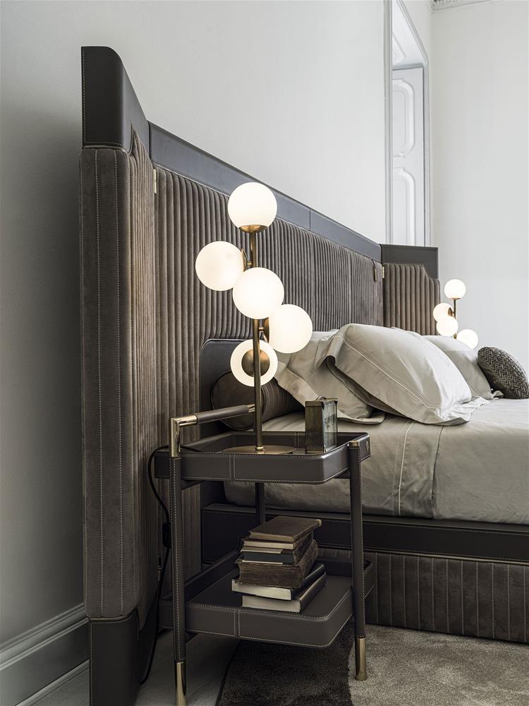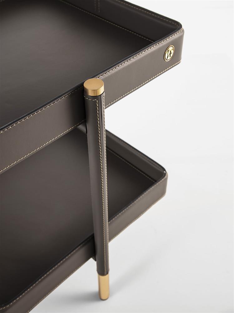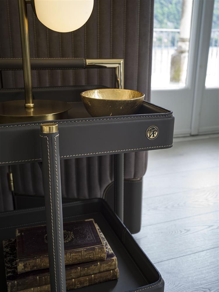 Horná polica: v pevnej polohe potiahnutá kožou a kontrastným prešívaním