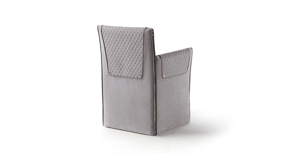 Operadlo: vonkajšia a vnútorná časť chrbtovej opierky je vyrobená s prešívanou vložkou design E s hladkým profilom a na želanie dozdobená pántmi a ozdobnými gombíkmi v zlatej farbe alebo vo farbe čierny chróm.