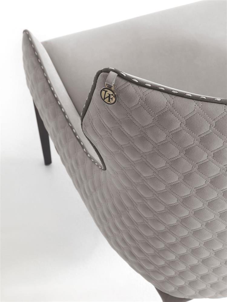 Operadlo : Vonkajšia časť chrbtovej opierky je vyrobená s prešívanou vložkou vzor E zakončená ručne šitým profilom s kontrastnou niťou.