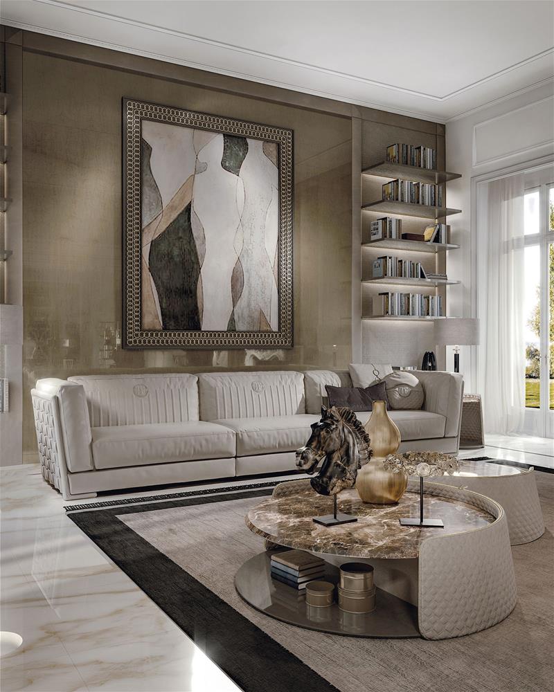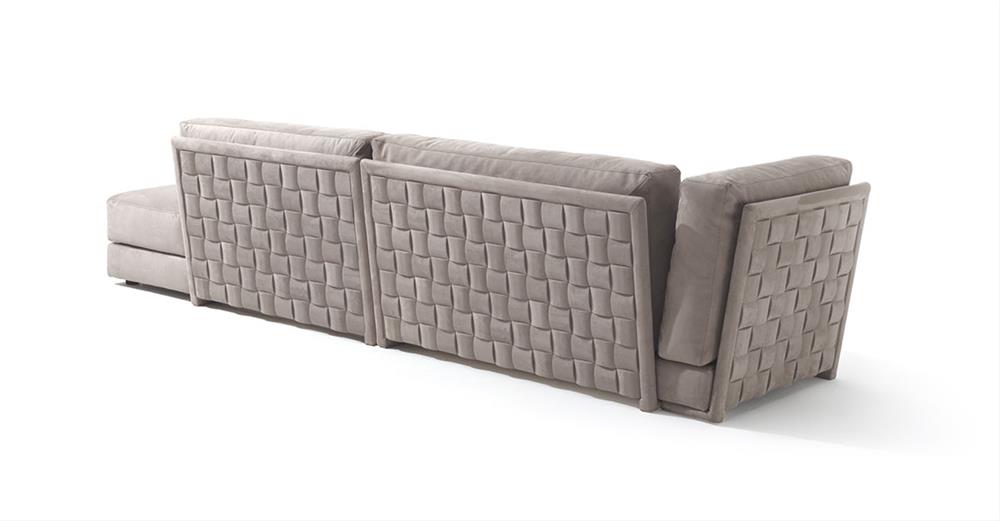 DREVENÁ VERZIA:operadlá a podrúčky vyrobené na vonkajšej strane s panelom s „prepletaným“ efektom pomocou ručnej aplikácie jednotlivých hmoždiniek z masívneho dreva vo farbe tmavý orech. Tento model je vyrobený výhradne vo farbe Noce Dark Chiaro. Koncovky sú dostupné aj vo verzii s lakťovou opierkou s efektom „tkaného“ dreva a hladkou opierkou chrbta.