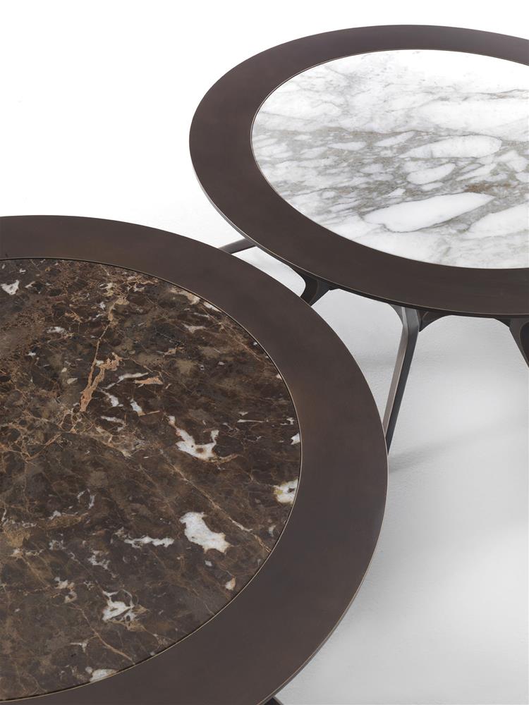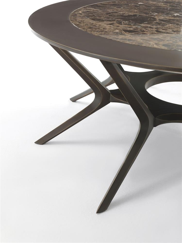 Konferenčný stolík Ducci sa vyznačuje štruktúrou masívneho dreva, ktorá vyniká zvláštnosťou tvarovaných nôh usporiadaných do hviezdy pre jedinečný a neočakávaný efekt. Vrchná doska má vždy hranu z masívneho dreva, na ktorej spočíva mramorová alebo zrkadlová doska, čím sa zdôrazňujú detaily materiálov a kontrasty. Konferenčný stolík nečakaných tvarov, ktorý elegantne zariadi každú miestnosť.