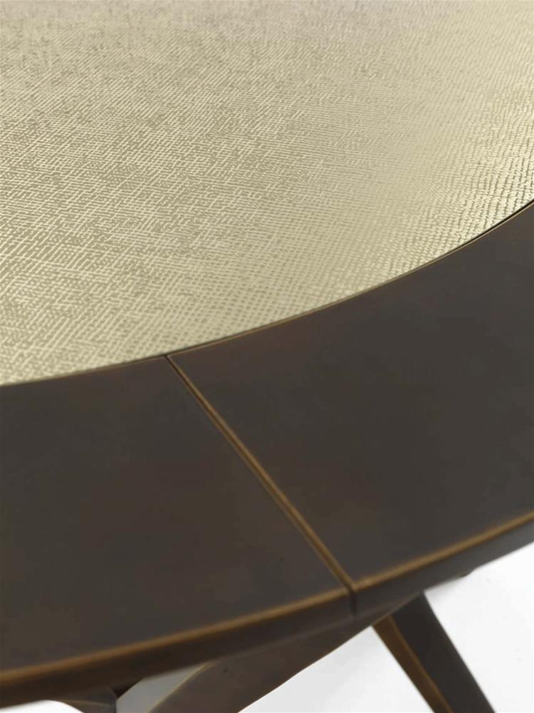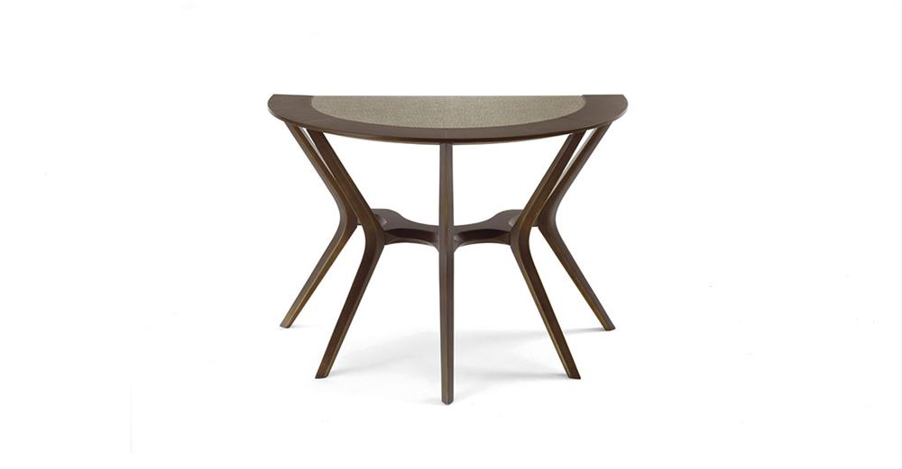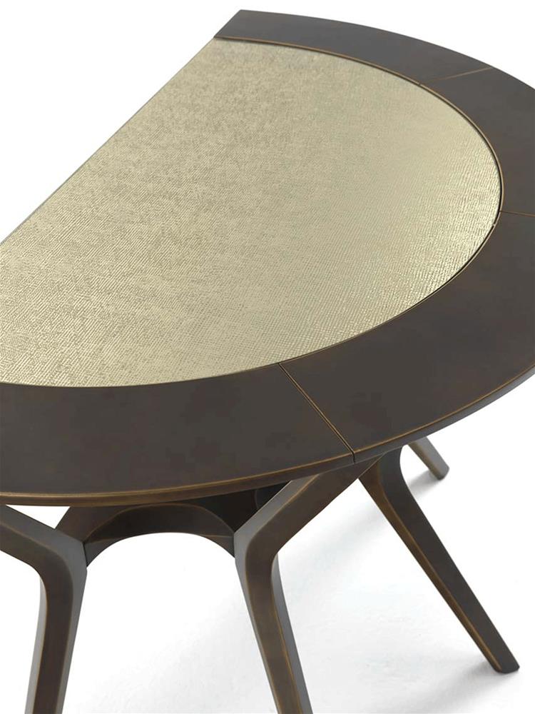 Konzola Ducci sa vyznačuje masívnou drevenou štruktúrou, ktorá vyniká polkruhovým vrchom a zvláštnosťou tvarovaných nôh usporiadaných do hviezdy pre jedinečný a neočakávaný efekt. Vrchná doska má vždy hranu z masívneho dreva, na ktorej spočíva mramorová alebo zrkadlová doska, zdôrazňujúc detaily materiálov a kontrasty.