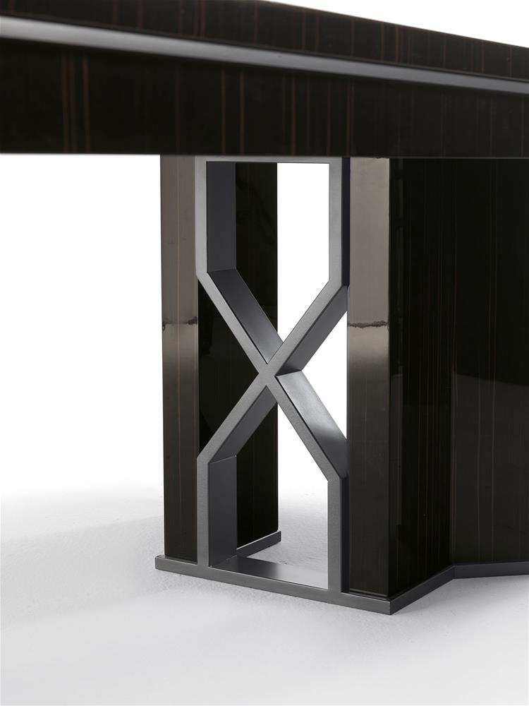 Nohy: z masívneho dreva dostupné v lesklom alebo matnom prevedení ebony alebo eben, alebo vo farbe Noce Dark s kovovou základňou a vložkou z bronzovo lakovaného kovu, zlatý chróm, čierny chróm alebo bronzový saténový efekt
