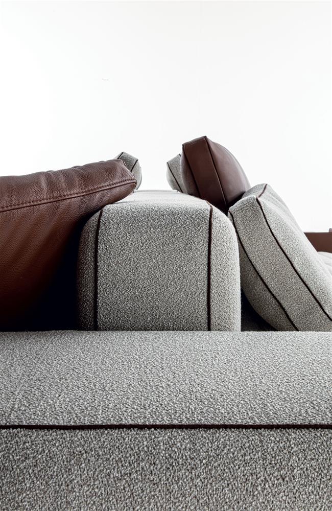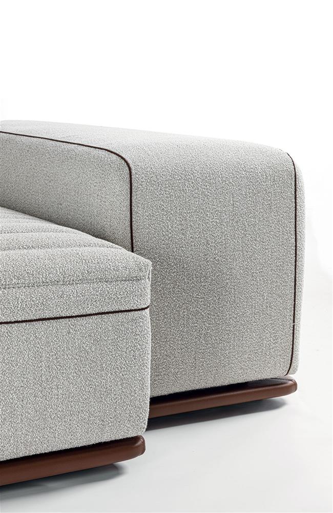 Čalúnenie: látka alebo koža, s vodorovnými prešívanými pásikmi.