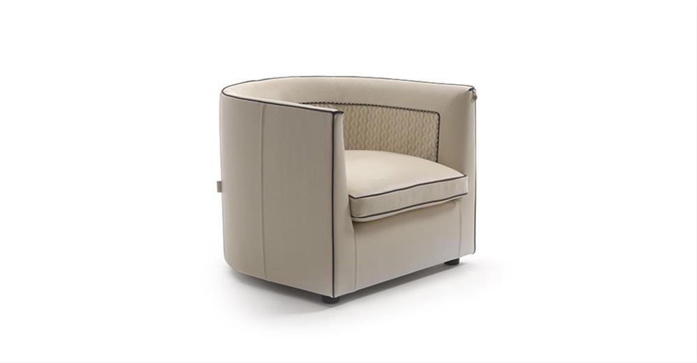 Operadlo: vnútorná časť chrbtovej opierky a podrúčok je vyrobená s prešívanou vložkou v dizajne A zakončená ručne šitou paspulkou s kontrastnou niťou.