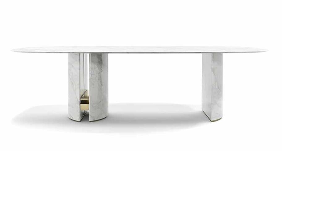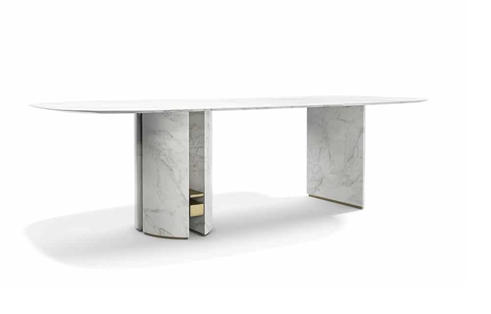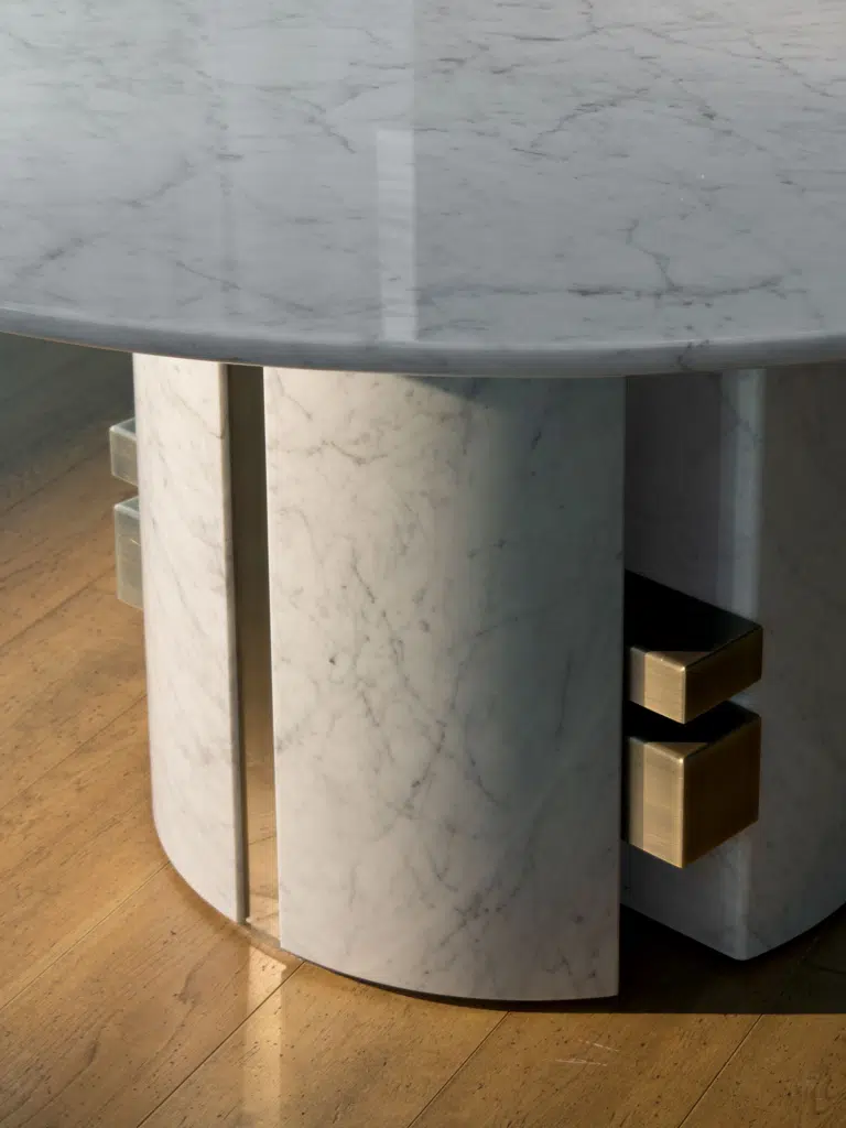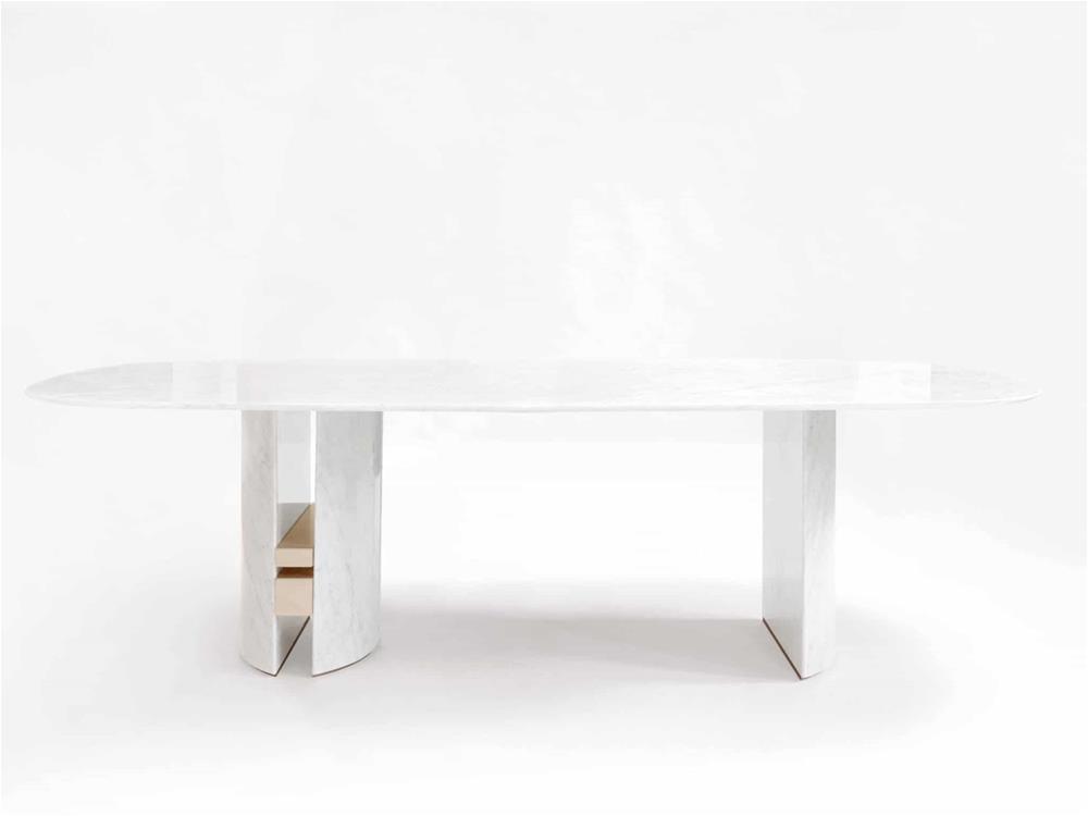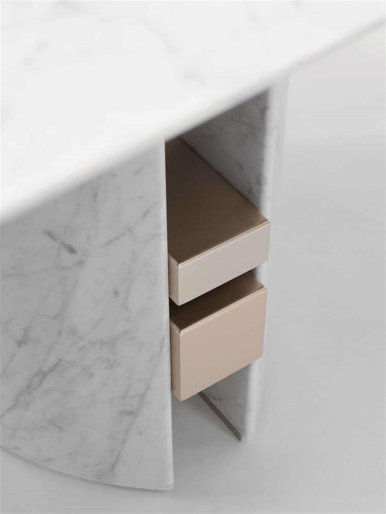 Konzola vyvinutá z čistého mramoru, odhaľuje veľkú všestrannosť prostredníctvom svojich čistých a jednoduchých tvarov.