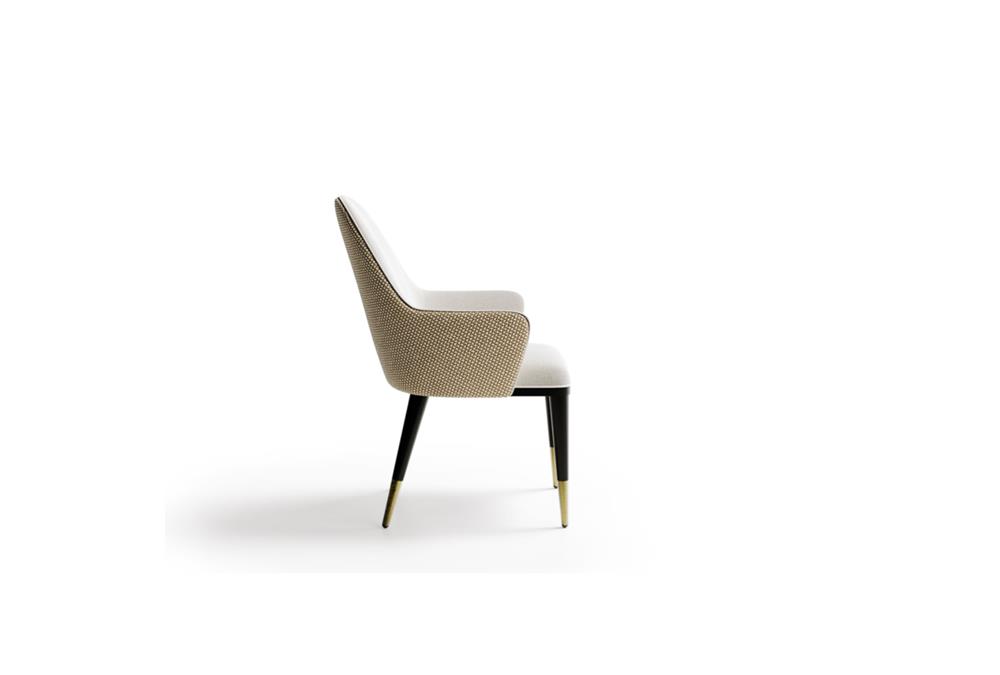 Drevený rám. Výplň z nedeformovateľnej polyuretánovej peny rôznej hustoty. Kovové ukončenie nožičky.