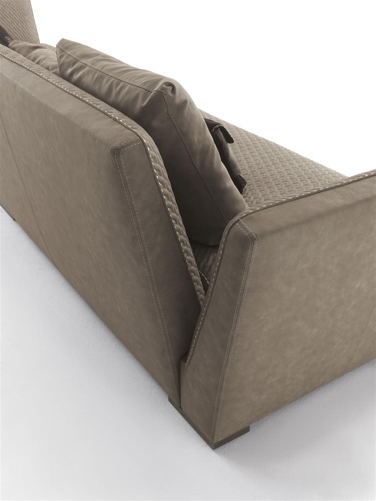 Profil: ručne šitý profil s kontrastnou niťou. Na želanie hladký profil v rovnakom materiáli a farbe poťahu alebo na želanie v koži alebo v kontraste.