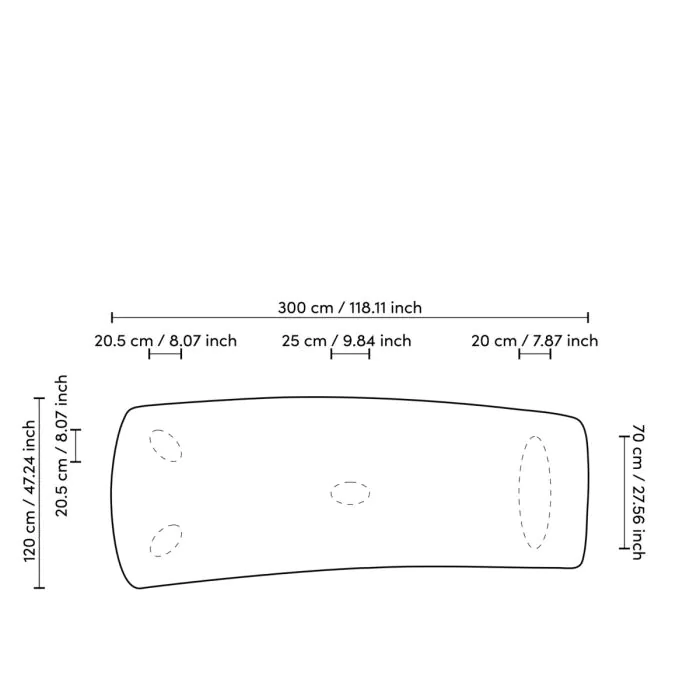 Rozmery : 300 x 120 x V. 76,5 cm