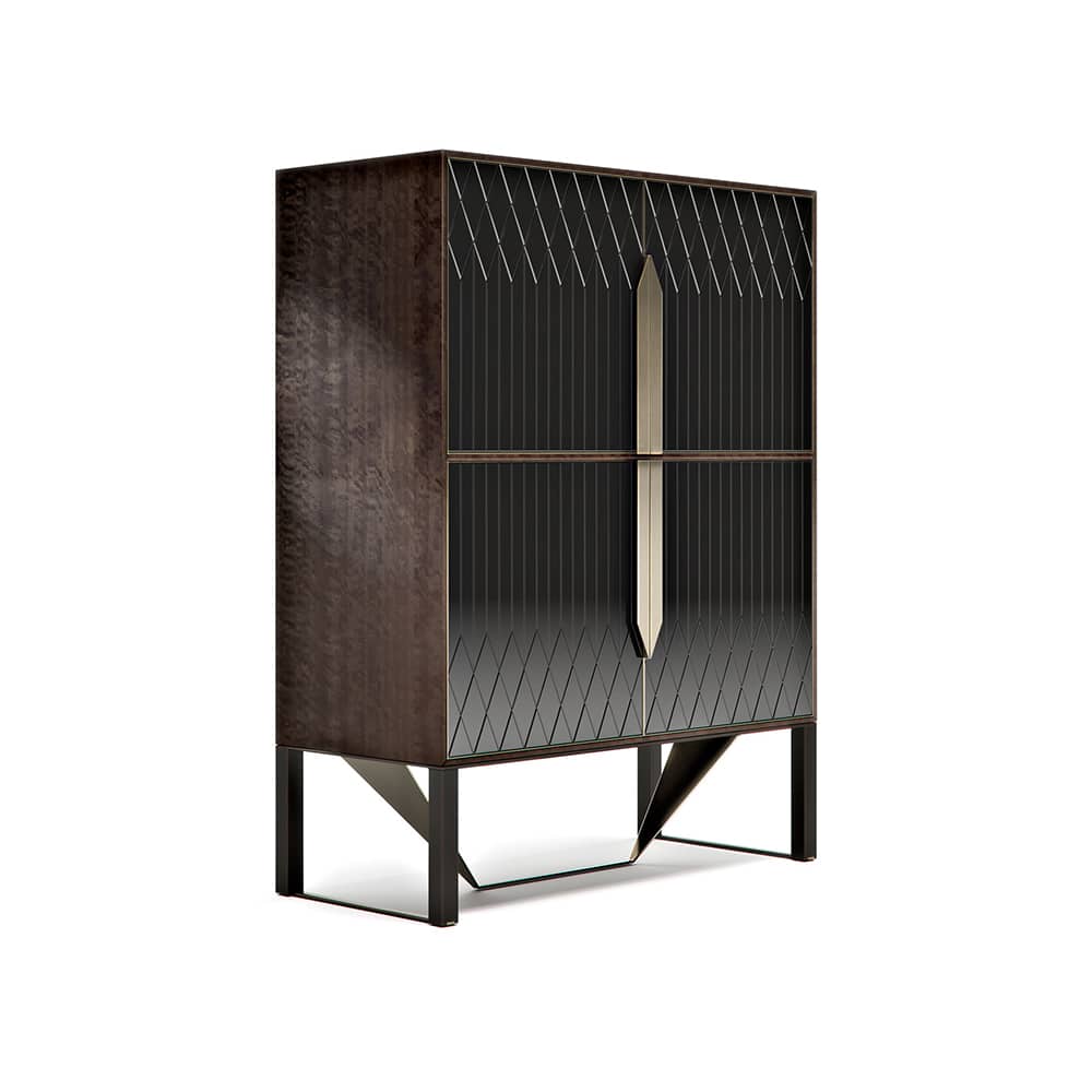 Skrinka je k dispozícii so štyrmi krídlovými dverami v lakovanom prevedení, k dispozícii aj celá pokrytá mramorom, vnútorná sklenená polica. Lesklé čierne prevedenie interiéru, skelnené police, vnútorné led svietenie.
