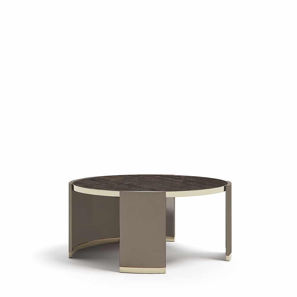 Okrúhla dosku v drevenom alebo mramorovom prevedení. Základňa je k dispozícii v lakovanej alebo ekokoži.