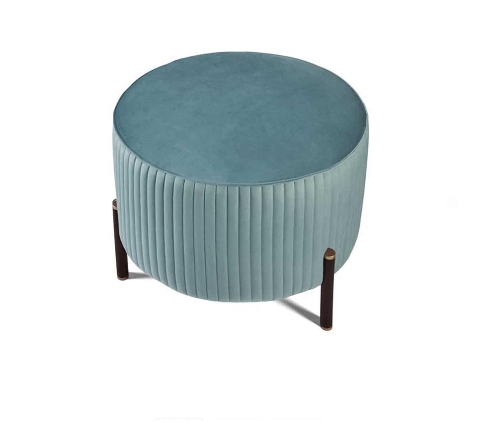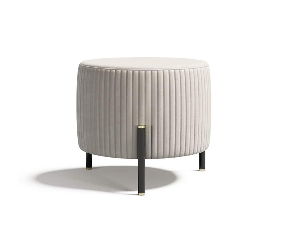 Elegantné prešívanie zdôrazňuje zakrivenú siluetu pufu z Toulouse, ktorého zaoblené tvary vytvárajú prekvapivý kontrast s formálnejšími geometrickými obrysmi.