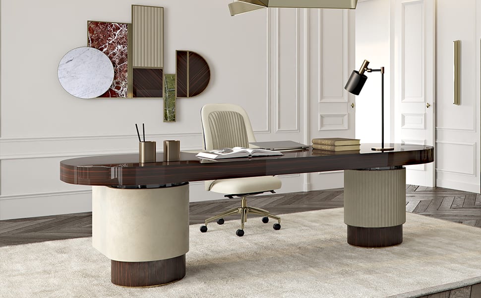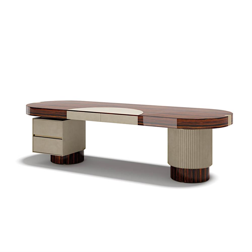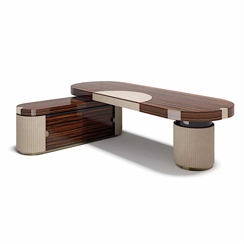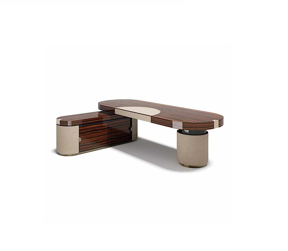 2 zásuvky , 2 posuvné dvierka a vnútorné police, bočná noha potiahnutá kožou alebo syntetickou kožou.
