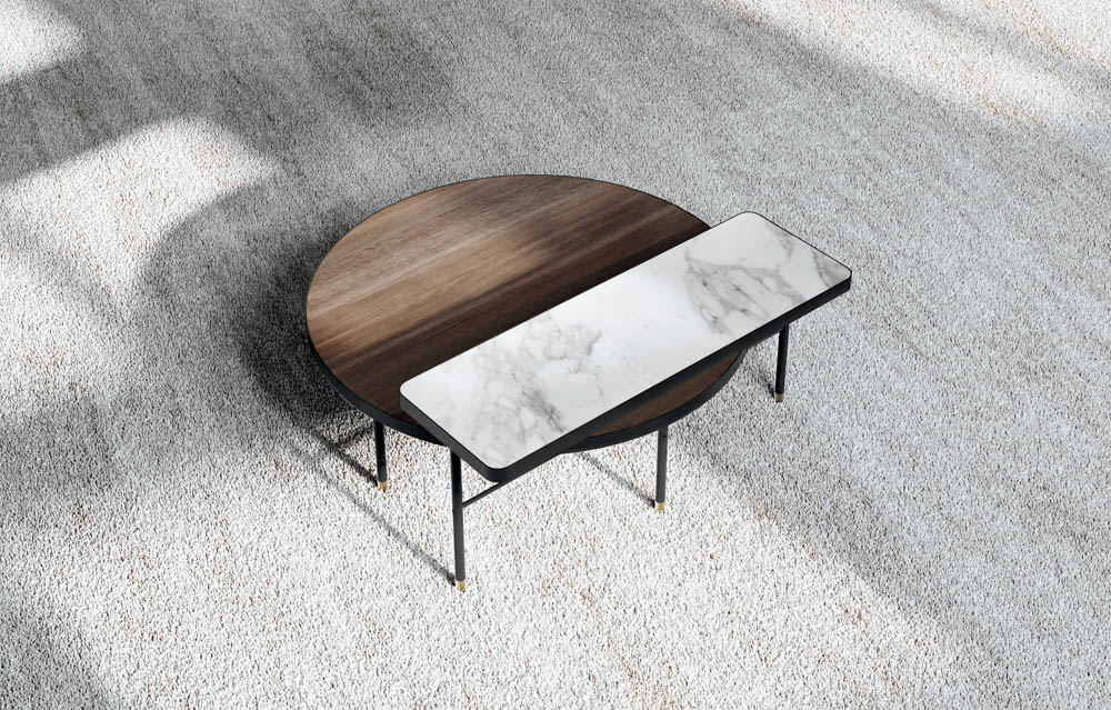 Kovová povrchová konštrukcia. K dispozícii top v rôznych kombináciách (essence + mramor, esencia + esencia, mramor + mramor atď.) Kovové nožičky.