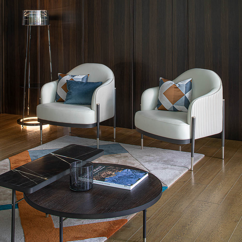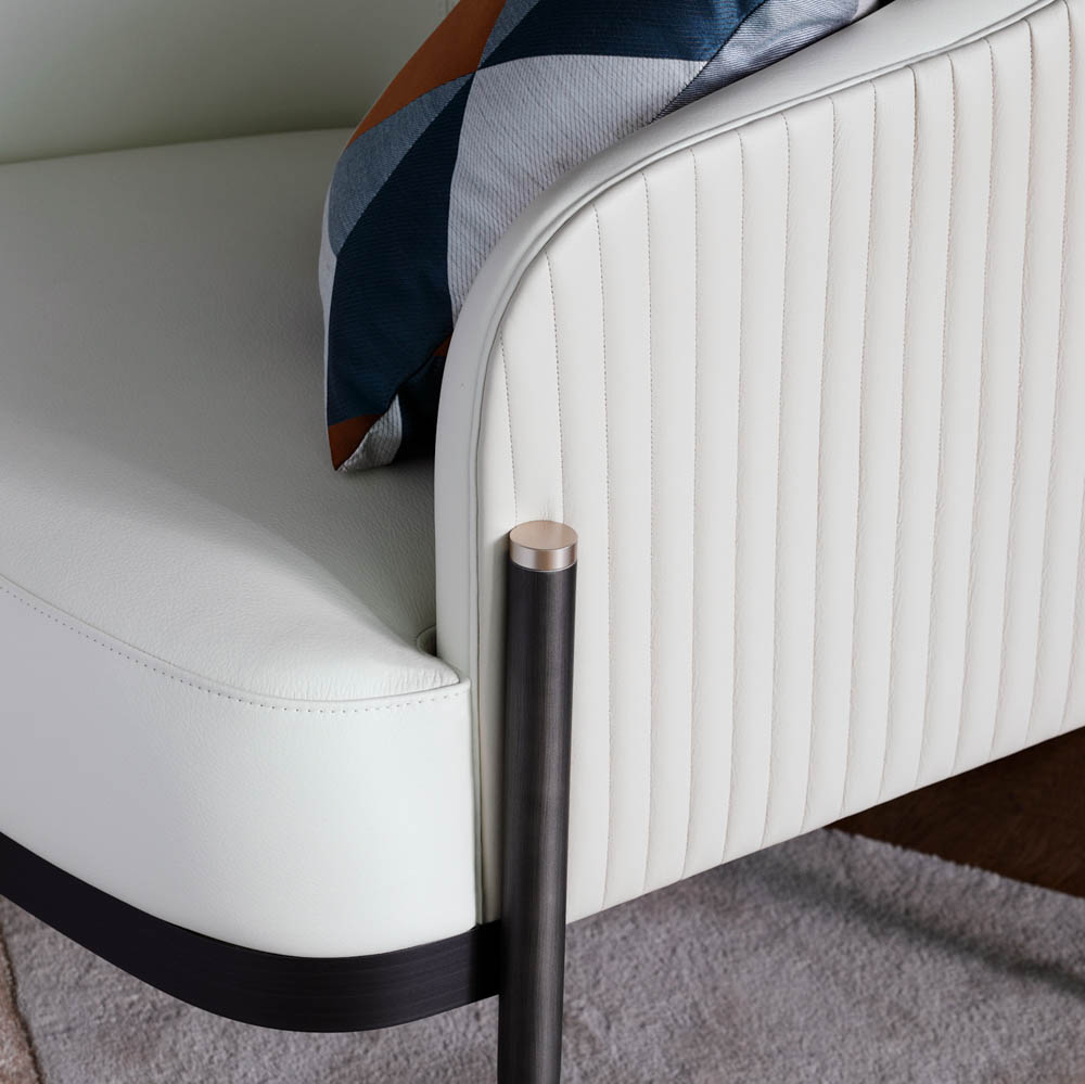 Oxford v rovnováhe medzi pevnou konštrukciou a zaveseným objemom dáva život sedadlám s mäkkým, obklopujúcim vzhľadom.