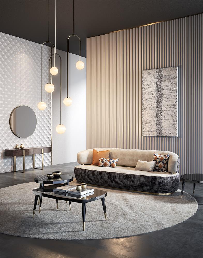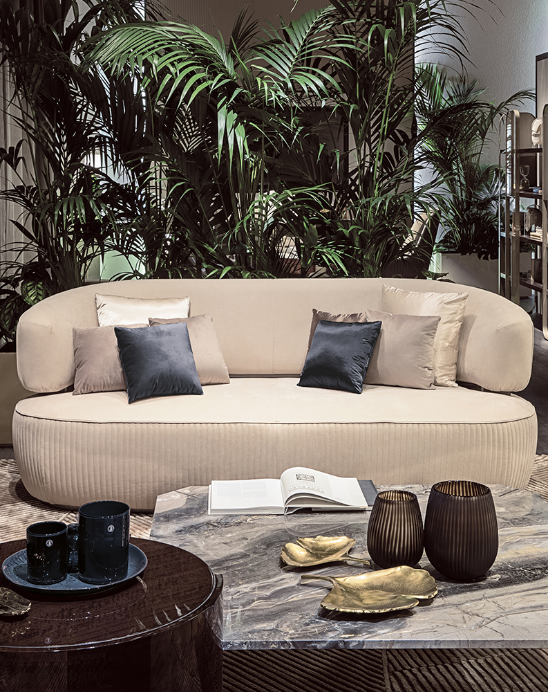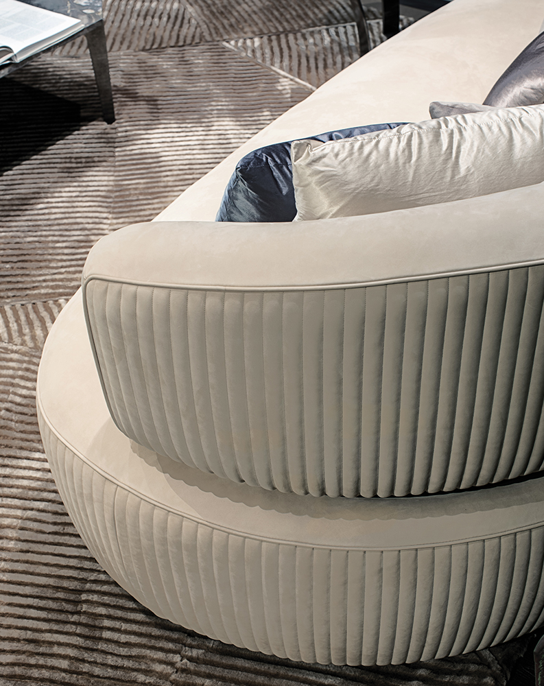 Jemne tvarovaná škrupina pojme sedadlo a otvára originálny kovový dokončovací prvok na operadle. Rovnováha medzi tuhou štruktúrou a mäkkým objemom dáva život sedadlám s vlnitým, obklopujúcim vzhľadom.
