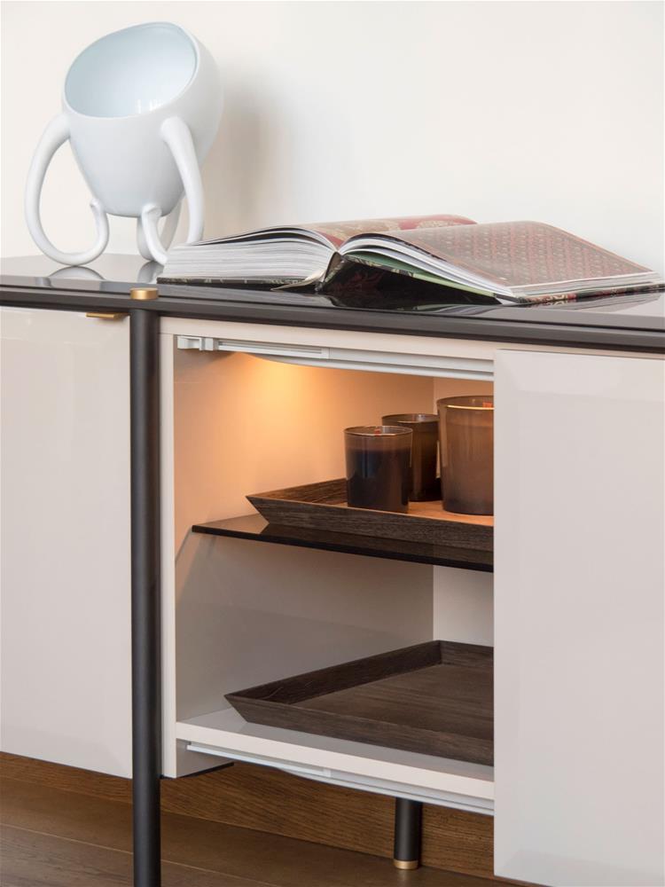 Príborník je k dispozícii s dvomi krídlovými dvierkami a dvomi koplanárnymi dvierkami, príborník je dostupný aj s mramorovou doskou.