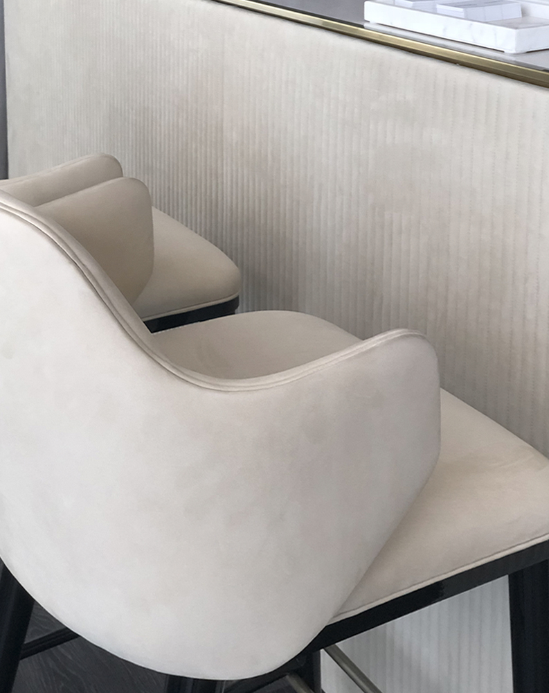 Barová stolička so vzorovými a elegantnými líniami, so sofistikovaným a rafinovaným charakterom, vhodná do každého prostredia.