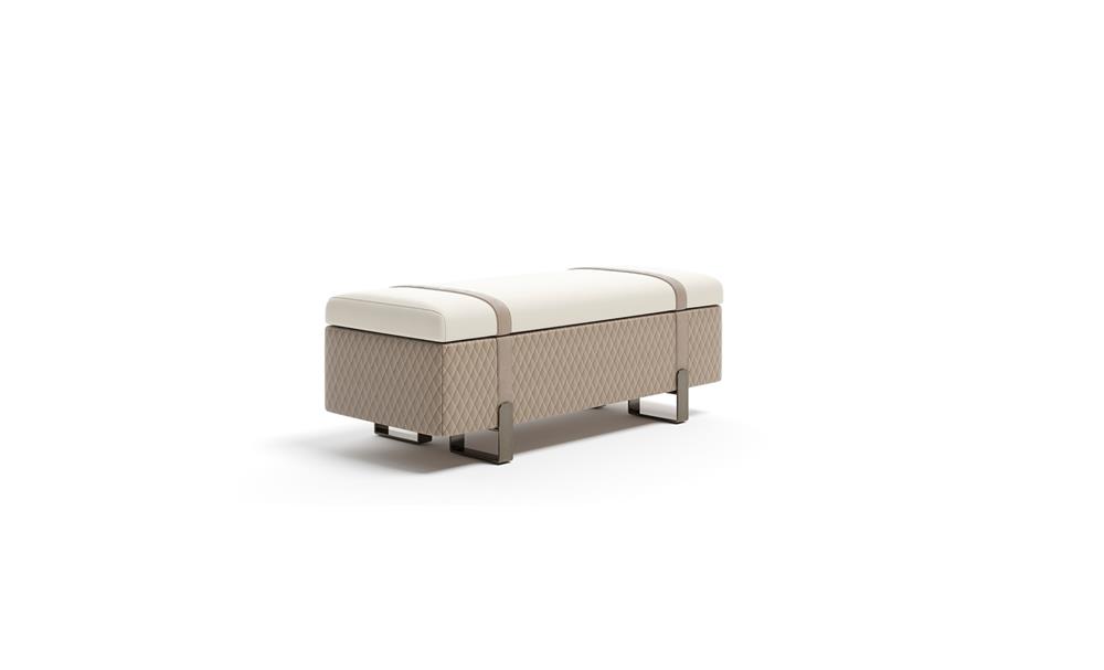 Drevený rám. Nedeformovateľná polyuretánová penová výplň rôznych hustôt. Základňa v kovovej úprave. Otvárateľná s úložným priestorom