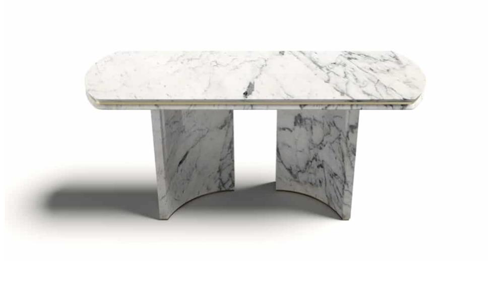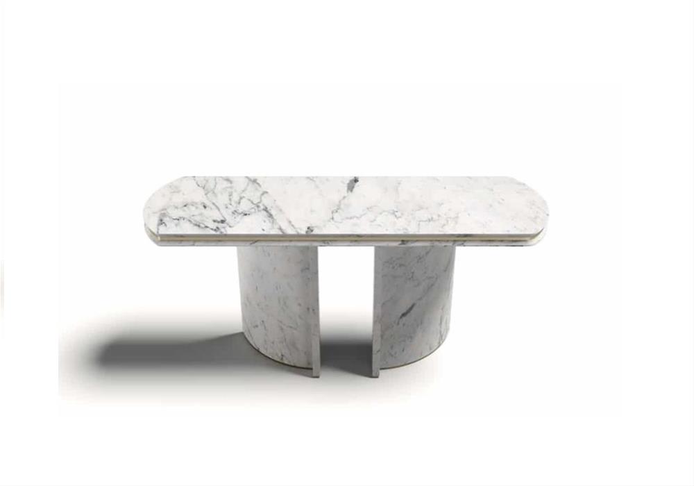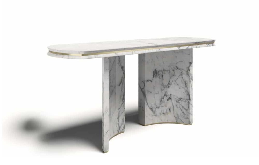 Konzola vyvinutá z čistého mramoru, odhaľuje veľkú všestrannosť prostredníctvom svojich čistých a jednoduchých tvarov.