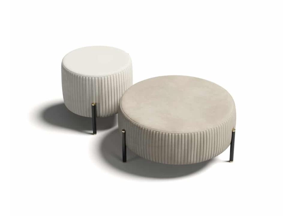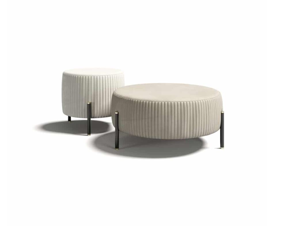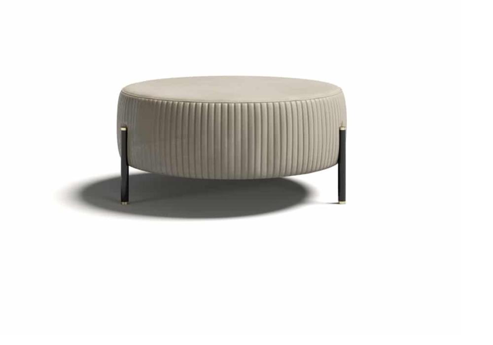 Elegantné prešívanie zdôrazňuje zakrivenú siluetu pufu z Toulouse, ktorého zaoblené tvary vytvárajú prekvapivý kontrast s formálnejšími geometrickými obrysmi.