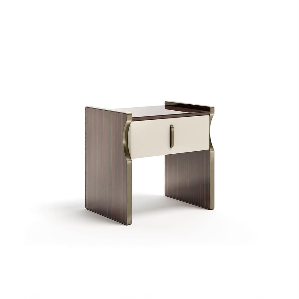 Drevená konštrukcia, kovové detaily, 1 zásuvka v koži.
