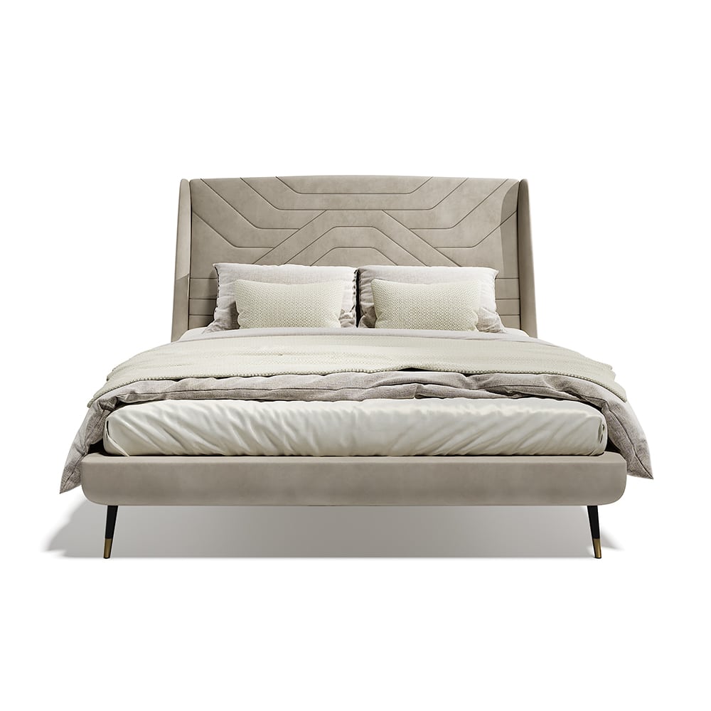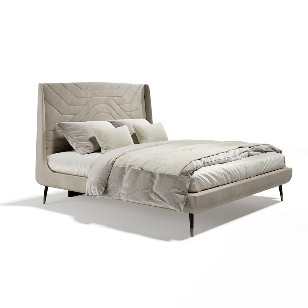 Čalúnenie dostupné v látke alebo koži, drevený rám, nožičky v kovovej úprave.