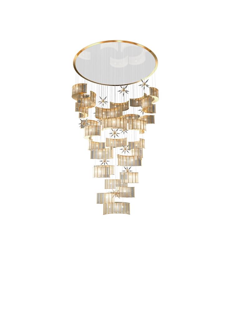 Rôzne figúry a tvary udelené tomuto lustrovému závesu dodávajú rozmer, ktorý dodáva zaujímavejší a komplexnejší vzhľad. Luster Cosmopolitan, ktorý s vášňou vyrobili naši kvalifikovaní remeselníci, je skvelým súčasným riešením osvetlenia pre široké priestory, ako sú haly alebo veľké schodiská.