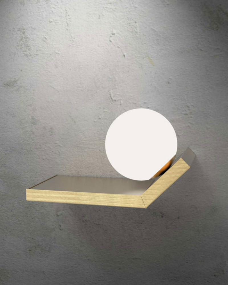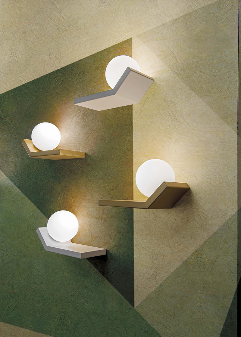 Popis: Krása a čistota tvarov s guľou v bielom fúkanom mlieku, ktoré dáva správne svetlo geometrii Scivolo. Povrchová úprava Galvanický zlatý satén, čierna a biela.