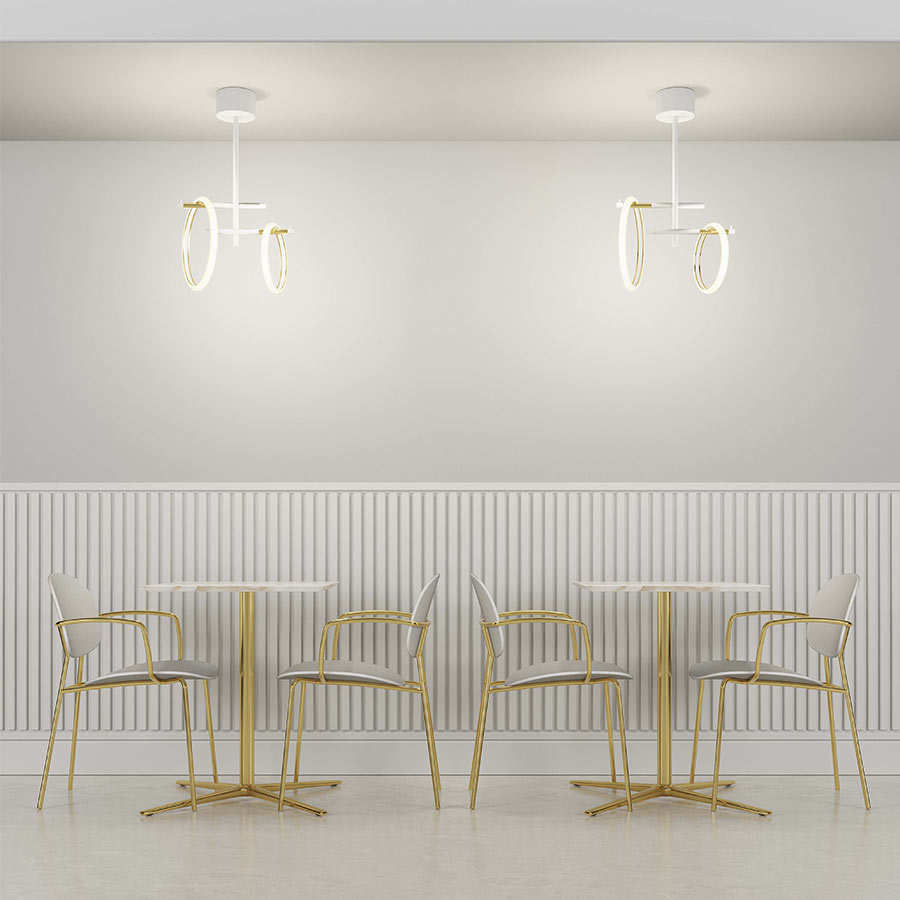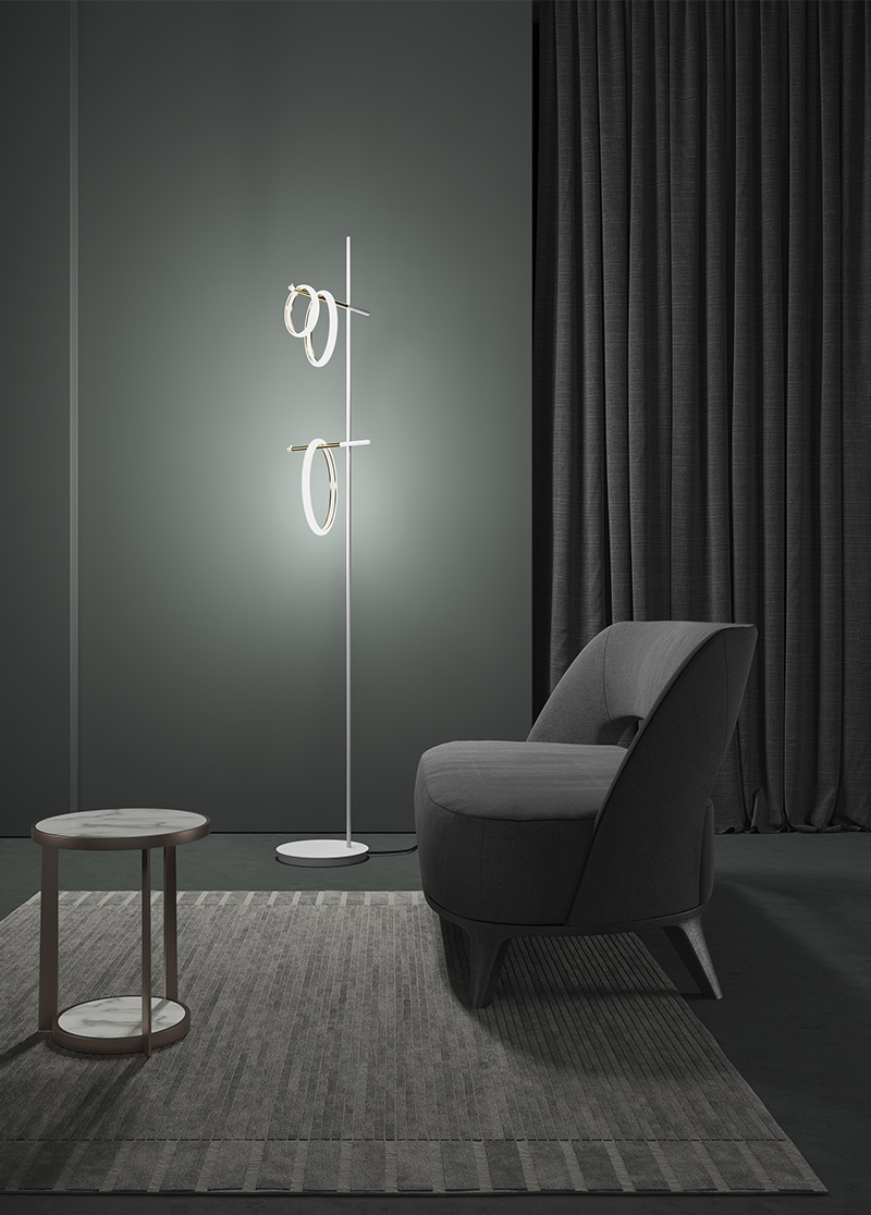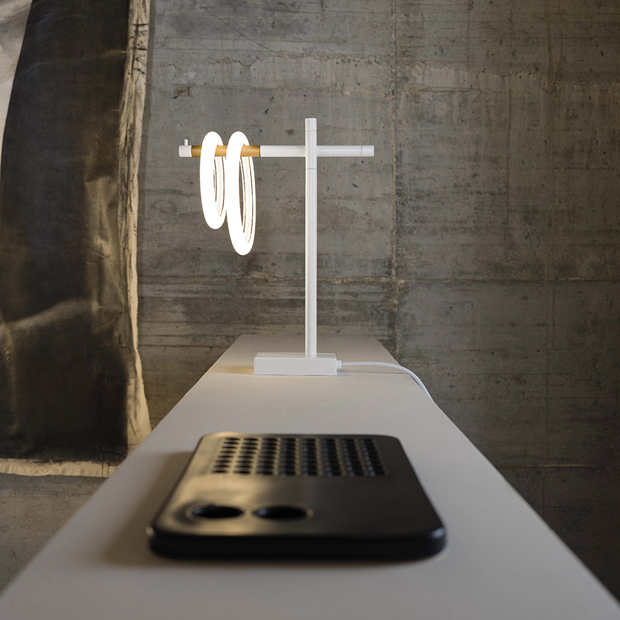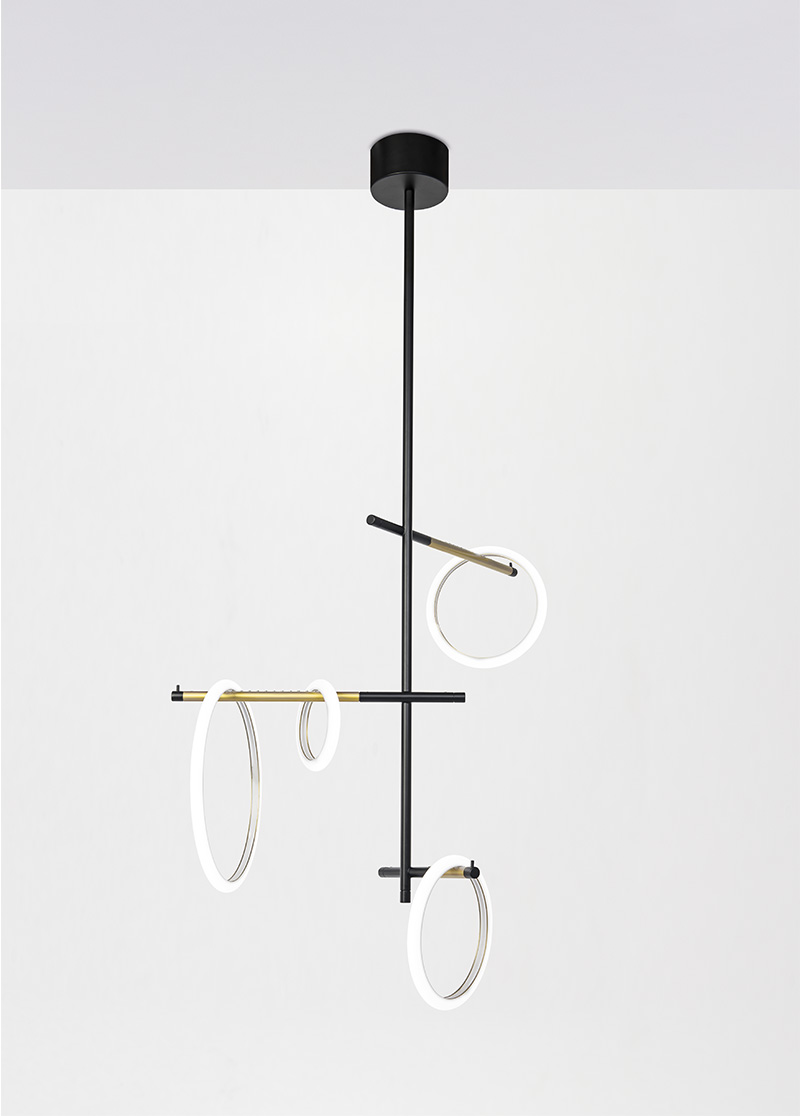 Jednoduché rúrkové kovové konštrukcie oživujú rad produktov: nástenné svietidlá, závesné a podlahové svietidlá, minimálne a elegantné konštrukcie, ktoré ako ikonické totemy zavesené v priestore čakajú na prenos energie…