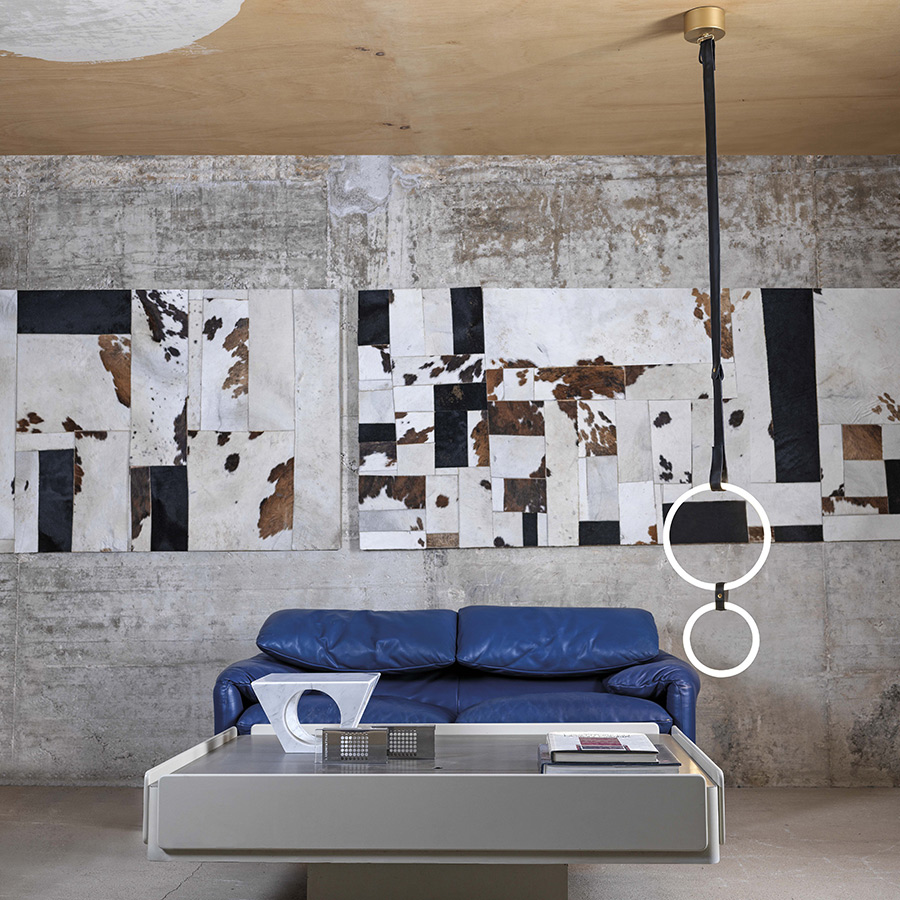 Koža funguje ako elektrifikačný systém, ktorý dáva život sérii modulárnych produktov s koženými remienkami v rôznych výškach, náramkami zdobenými zlatými patentkami, háčikmi a rozetami. Kompozície môžu byť jednosmerné, dvojcestné (s dvojitým roztokom) a trojcestné.