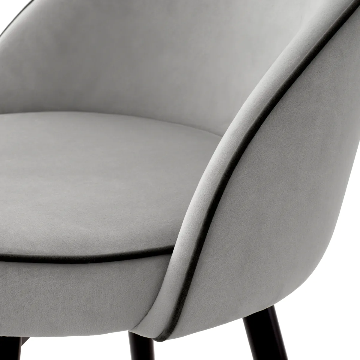 Roche svetlosivý zamat | roche tmavosivé potrubie | nohy v čiernej a mosadznej úprave
