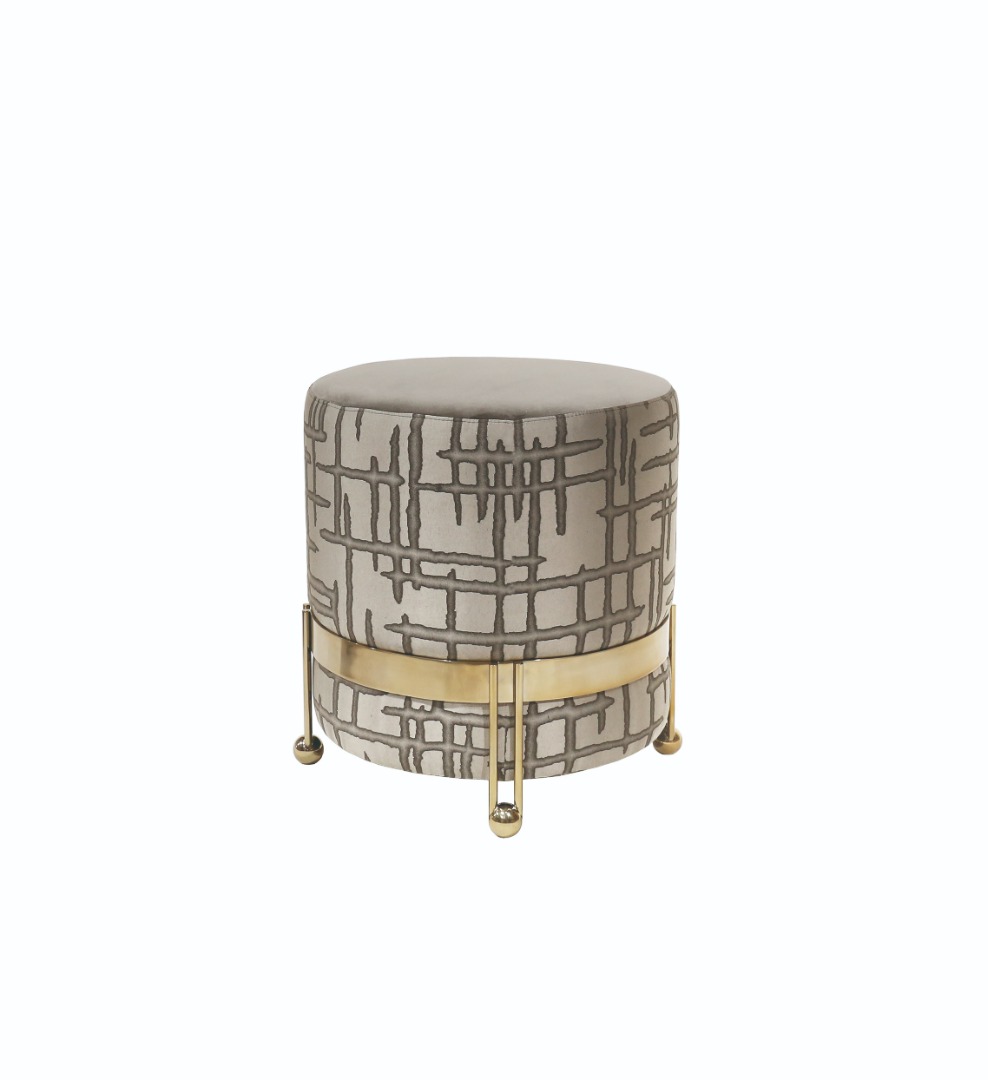 Výsledkom použitia zakrivených tvarov sú štýlové kúsky. Kovové guľové koncovky prinášajú sofistikovanosť, spájajúcu pohodlie a eleganciu. Je to moderný puf schopný premeniť každé prostredie.