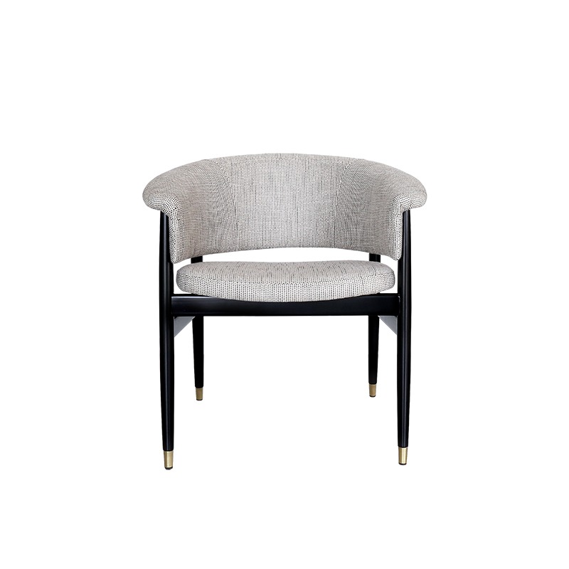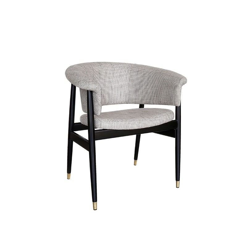 Jedálenská stolička Bloom, inšpirovaná príležitostným dizajnom v polovici storočia, má štruktúru masívneho dreva, vďaka čomu je stolička odolná. Sedák aj operadlo sú čalúnené, čo evokuje triezvy vzhľad, ktorý kontrastuje s mosadznými detailmi na nohách.