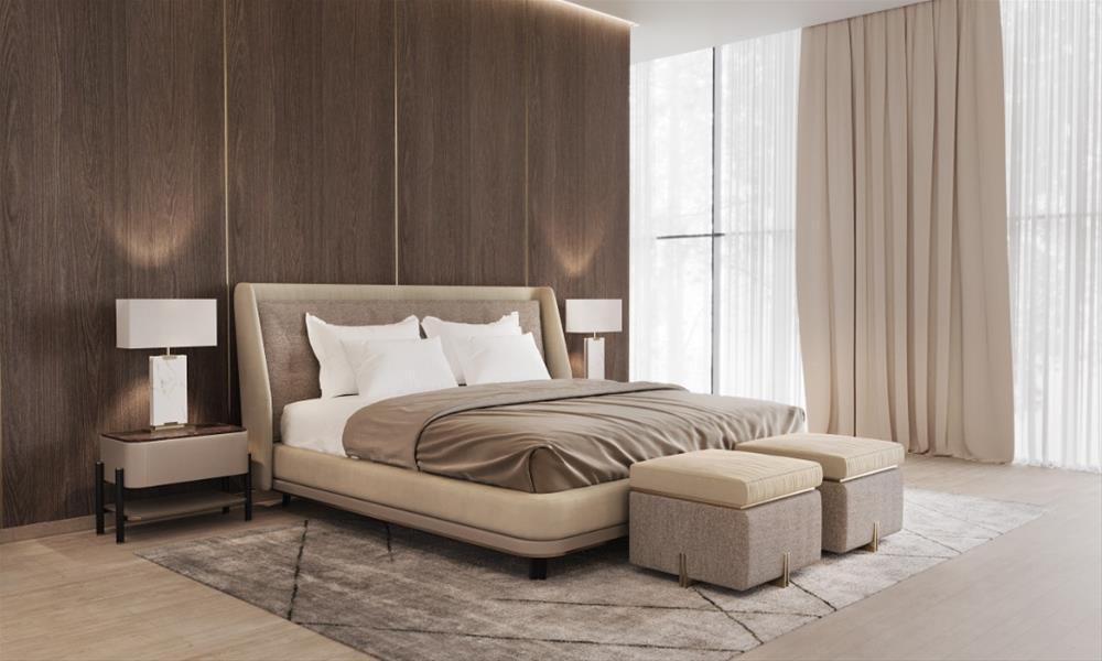 Harmonický dizajn definuje elegantnú a modernú posteľ. Čalúnené čelo a panely s dvoma kontrastnými látkami, ako aj drevené nohy robia z Lobby postele pohodlné riešenie, vizuálne aj fyzicky, pre súčasné interiérové miestnosti.
