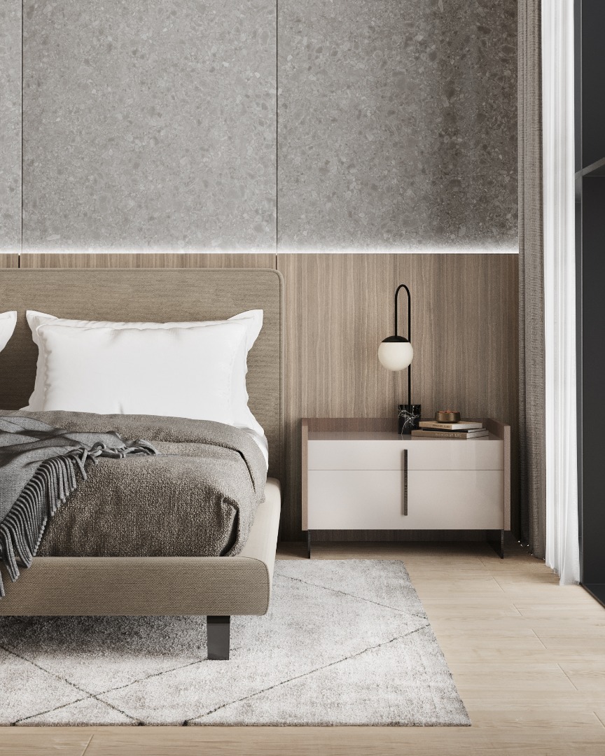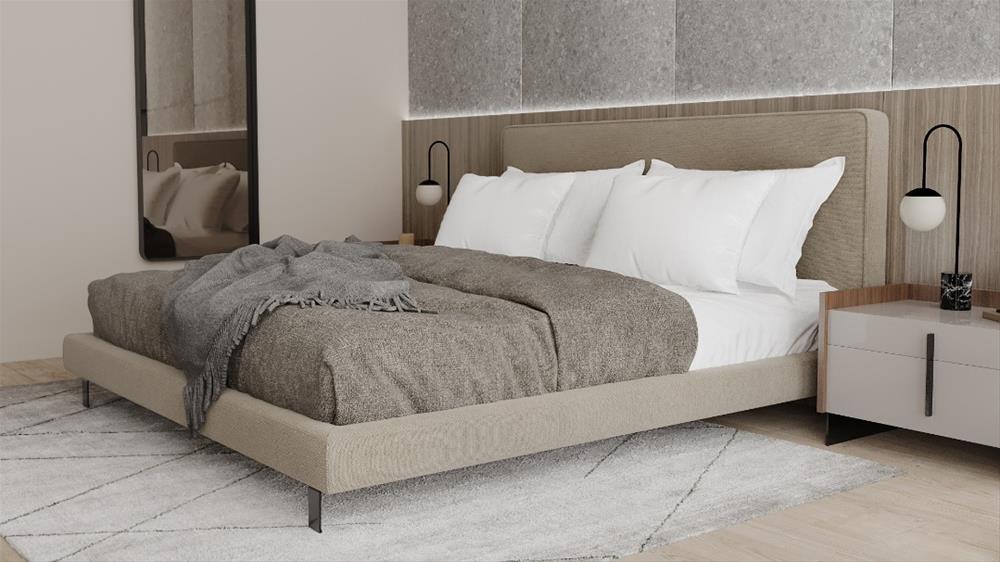 Pohodlná posteľ do modernej a modernej izby. Celočalúnené čelo postele má rám vyrobený z látkového lemu, ktorý dodáva nádych originality. Jeho zaoblené tvary zároveň sprostredkúvajú pocit pohodlia, elegancie a tepla, ktoré sú základom každej miestnosti.