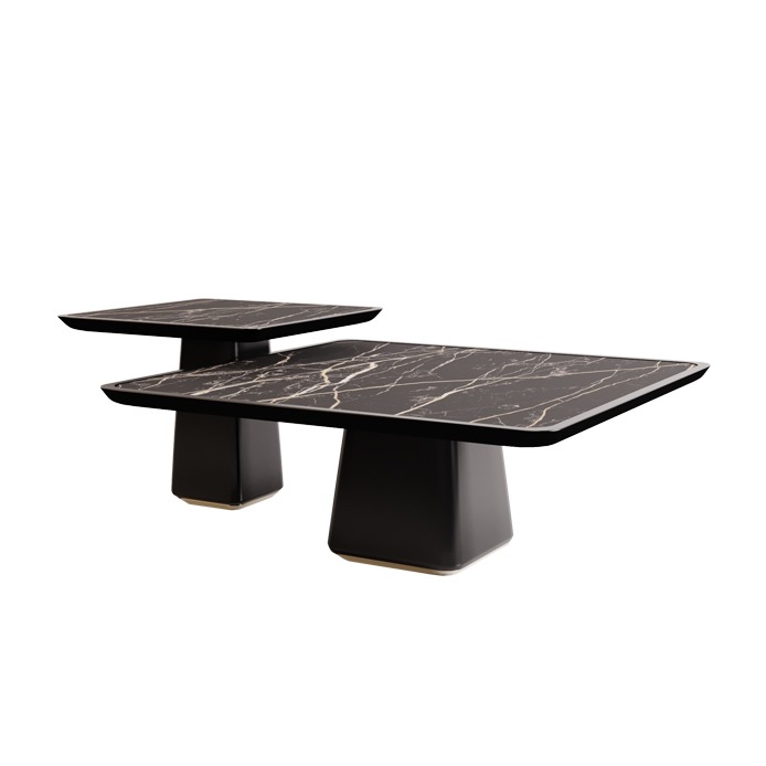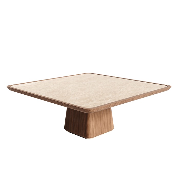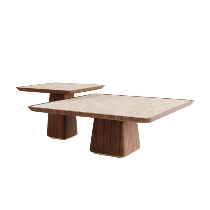 Elegancia stredového stola Billy sa odráža v jeho tvare a materiáloch. Jednoduchá, ale sofistikovaná, veľkorysá silueta sa spája s mramorovou noblesou, kontrastuje s krásnymi drevenými a kovovými detailmi.