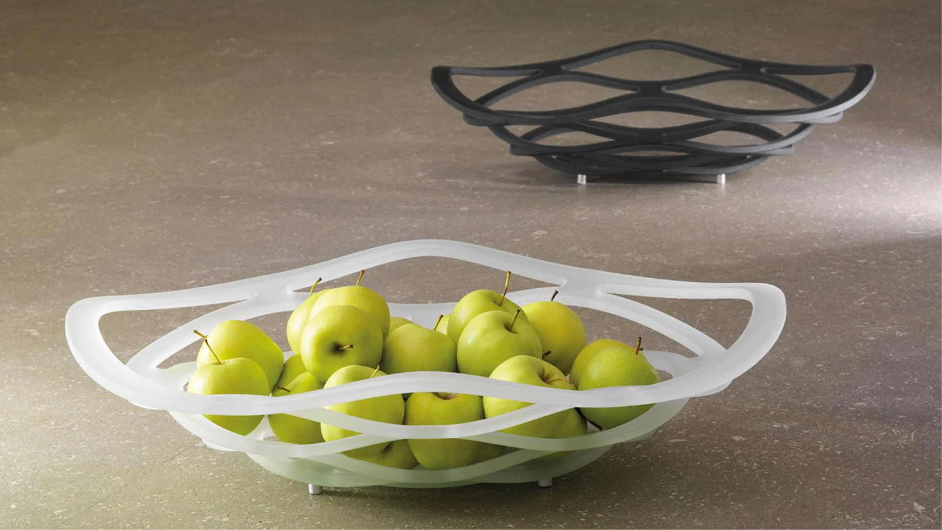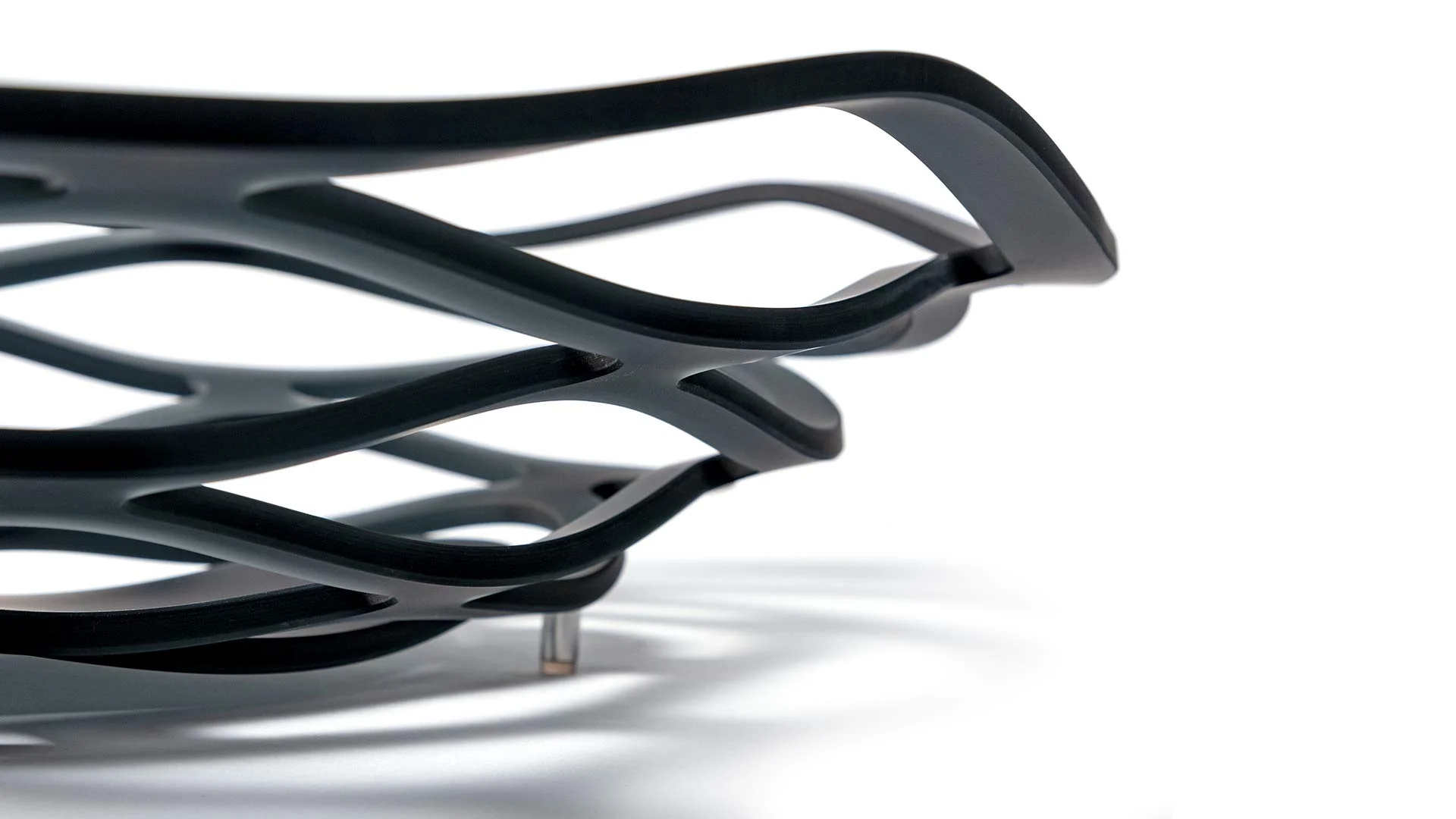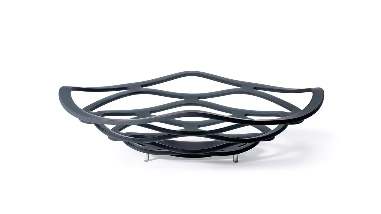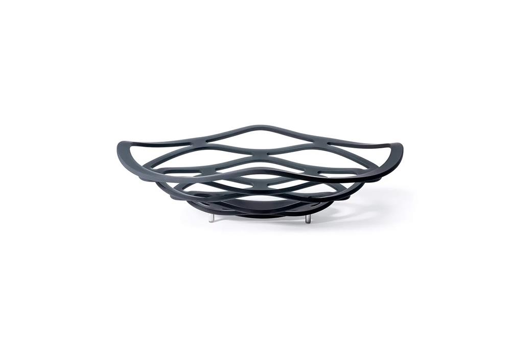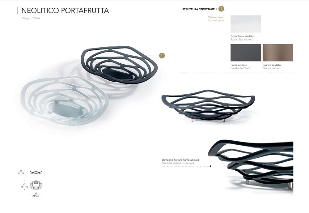 Miska na ovocie zo zakriveného extračíreho, bronzového alebo dymovosivého skla s leptaným povrchom.