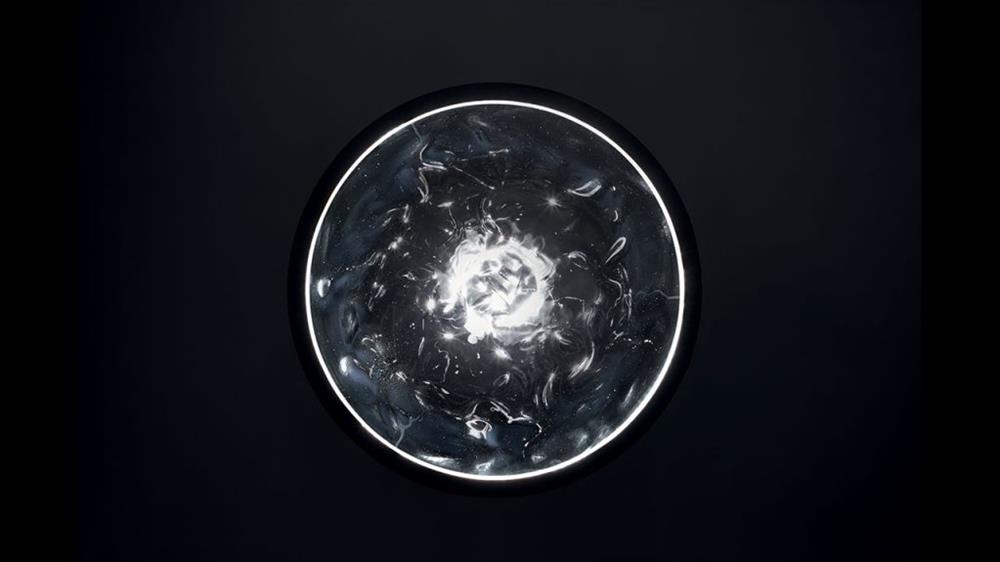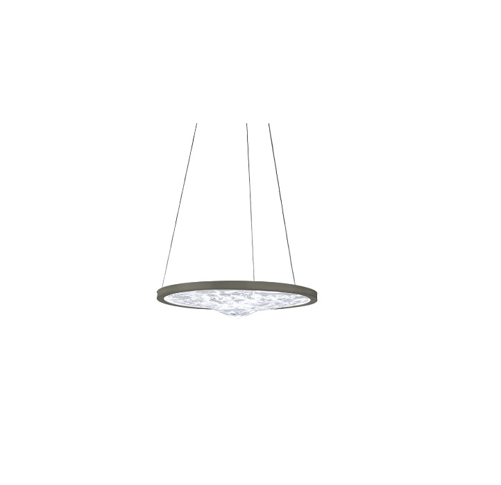 Závesné svietidlo s tienidlom z priehľadného skla Murano. Kovový rám a strieška v bronzovom prevedení. LED systém s bodkou v strieške a pásikom v ráme, dostupný aj v RGB bielej farbe.