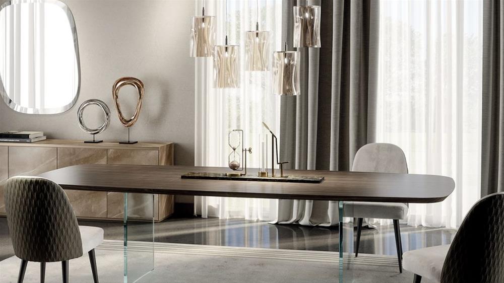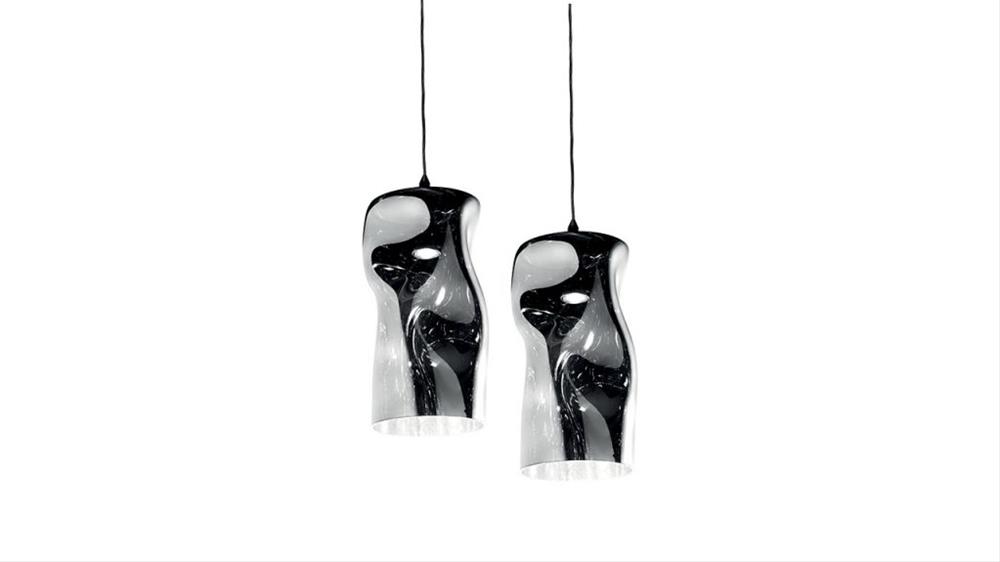 Závesné svietidlo z priehľadného, sivého, tabakového alebo jantárovo-irídiového skla Murano. Podpora zrkadlového stropu. LED svetlo.
